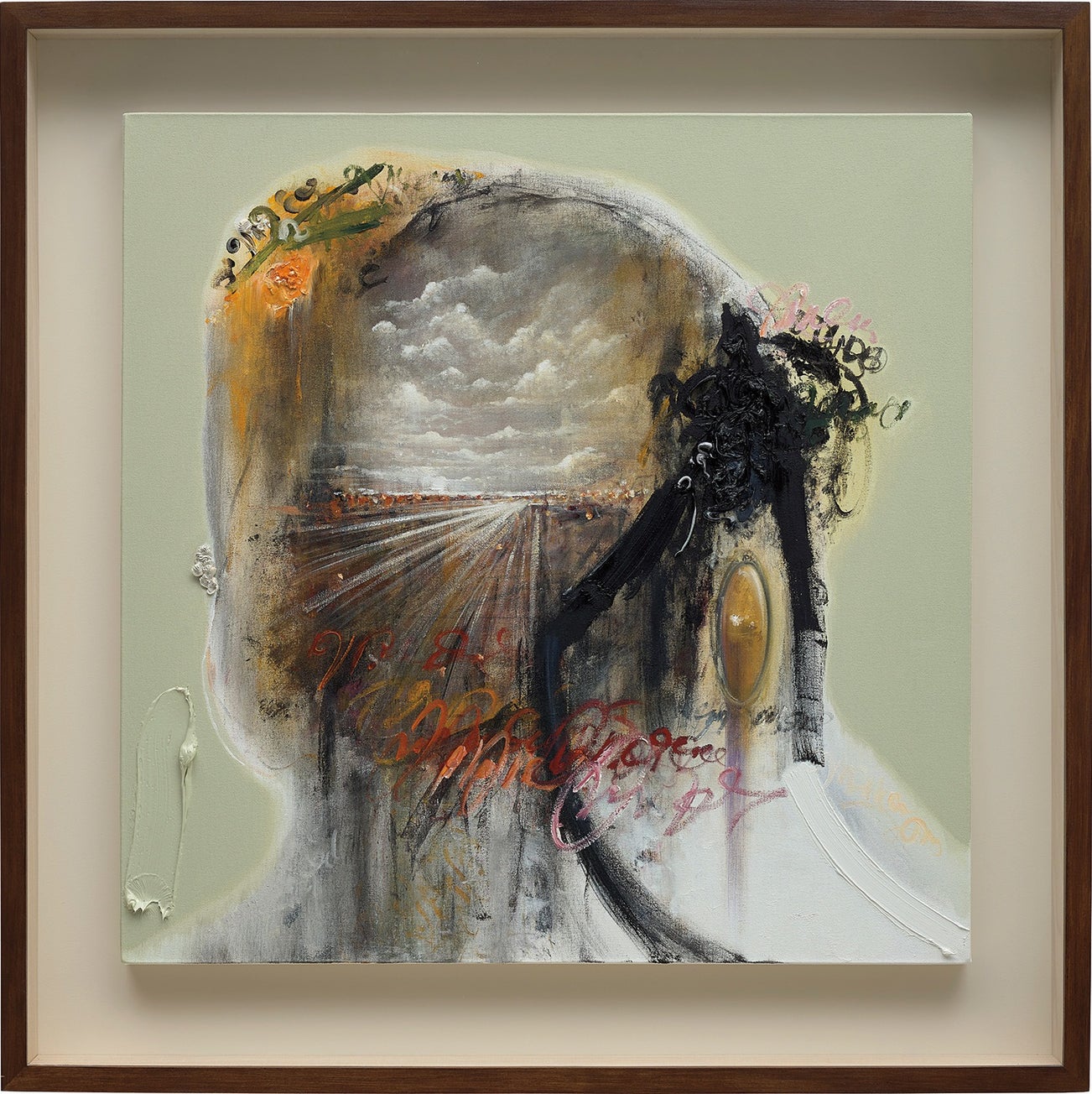 oil and acrylic on canvas, in artist's frame