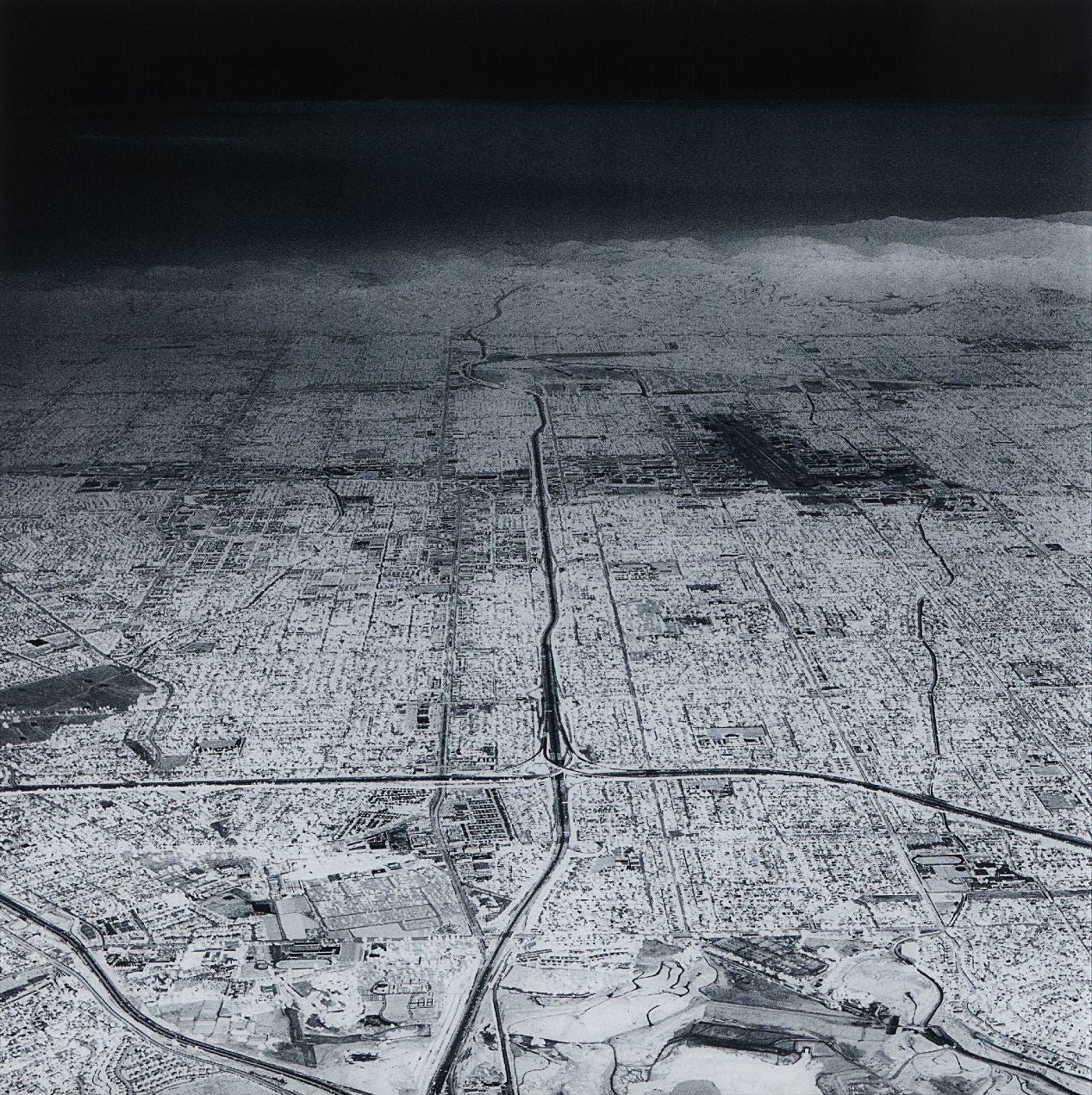 In his series Oblivion, David Maisel presents aerial photographs of the greater Los Angeles area, inverting light and dark to offer an entirely unfamiliar view of the sprawling city. By reducing the metropolitan "landscape" to the travel arteries that run north and south, east and west, disappearing into each other and the horizon, Maisel's photographs highlight the modern city void of any cultural or human context. In doing so, his photographs show the city as a constantly expanding organism, continuously pushing past its own boundaries to a new world beyond.