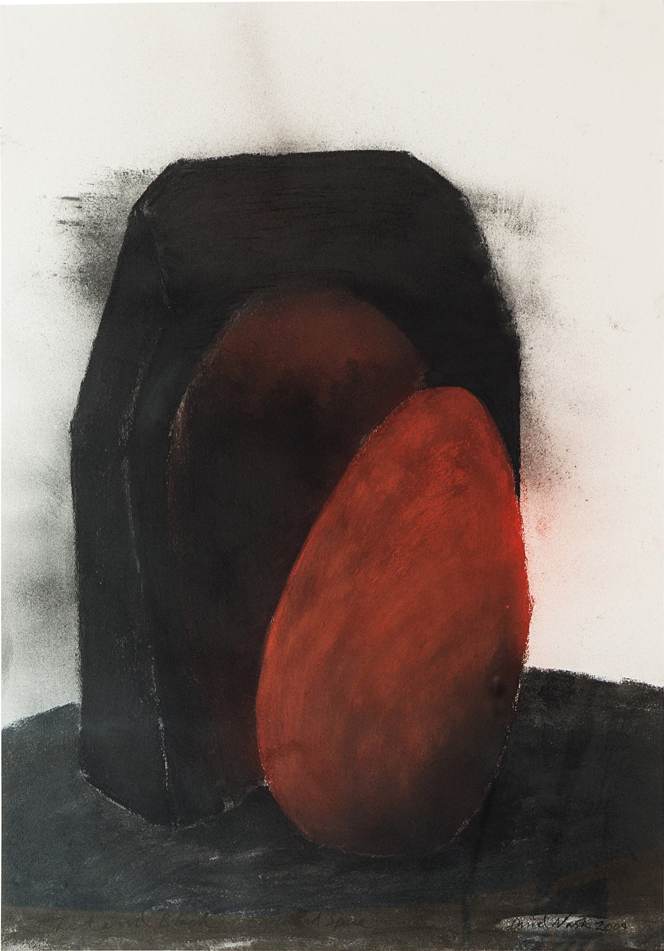 signed, titled and dated "David Nash 2004 Red and Black: Egg and Space" lower edge