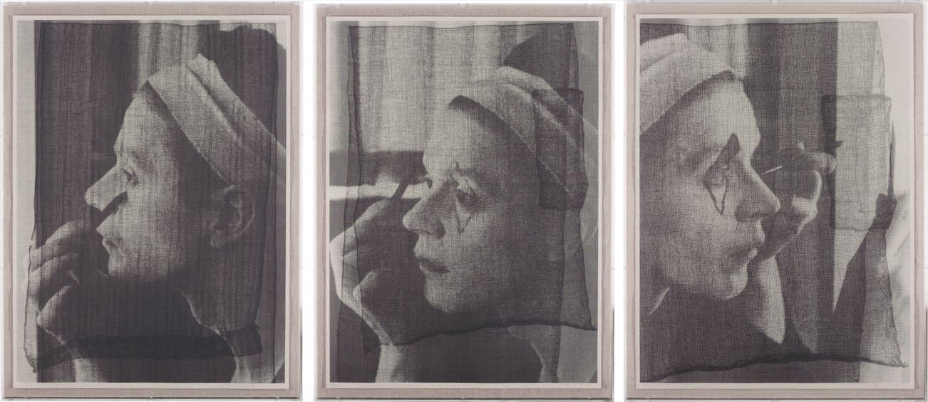 silkscreen on paper on linen, in artist's acrylic glass box, in three parts