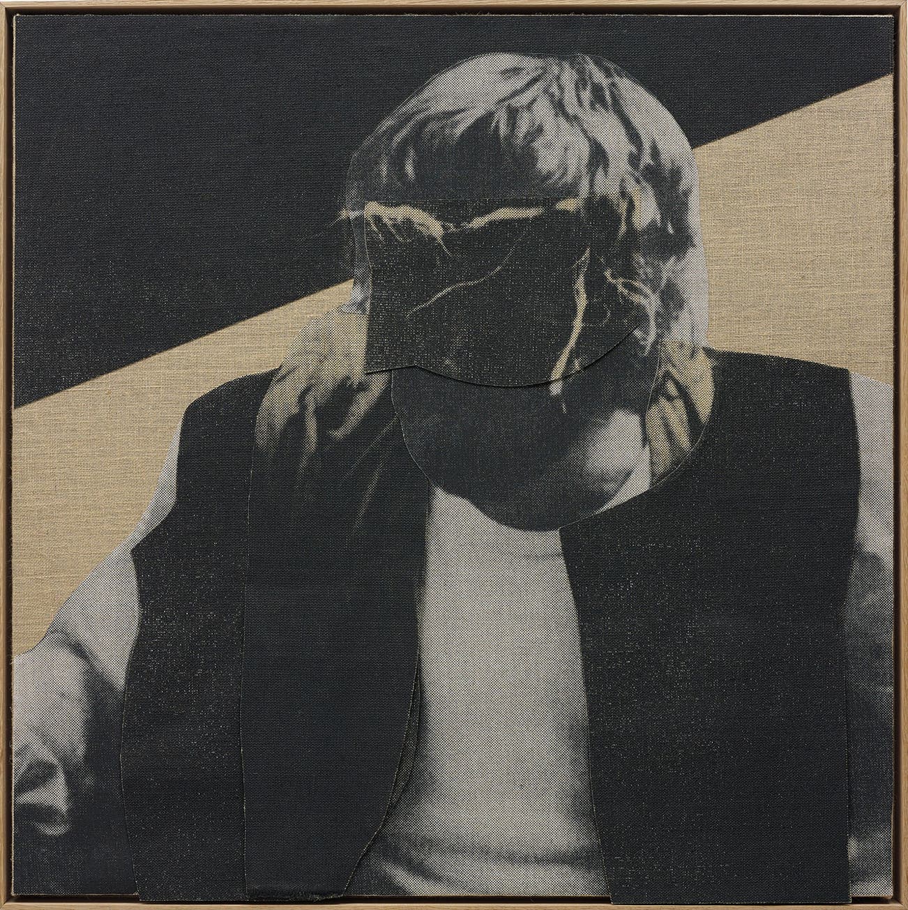 screen printed jute and linen laid on wood, in an artist's wooden frame