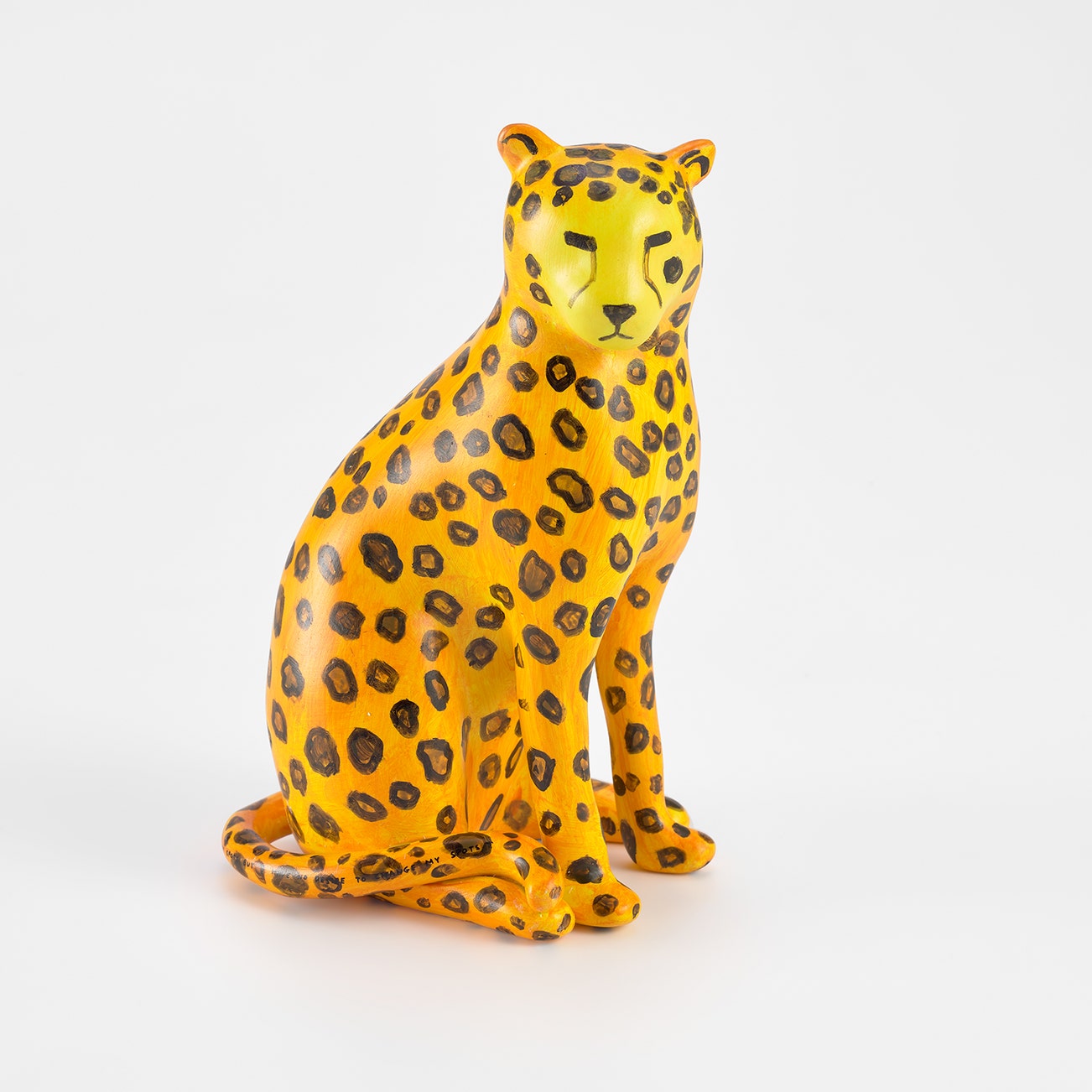 White earthenware sculpture painted in colours and glazed, contained in the original foam-lined wooden box with printed design on the lid.