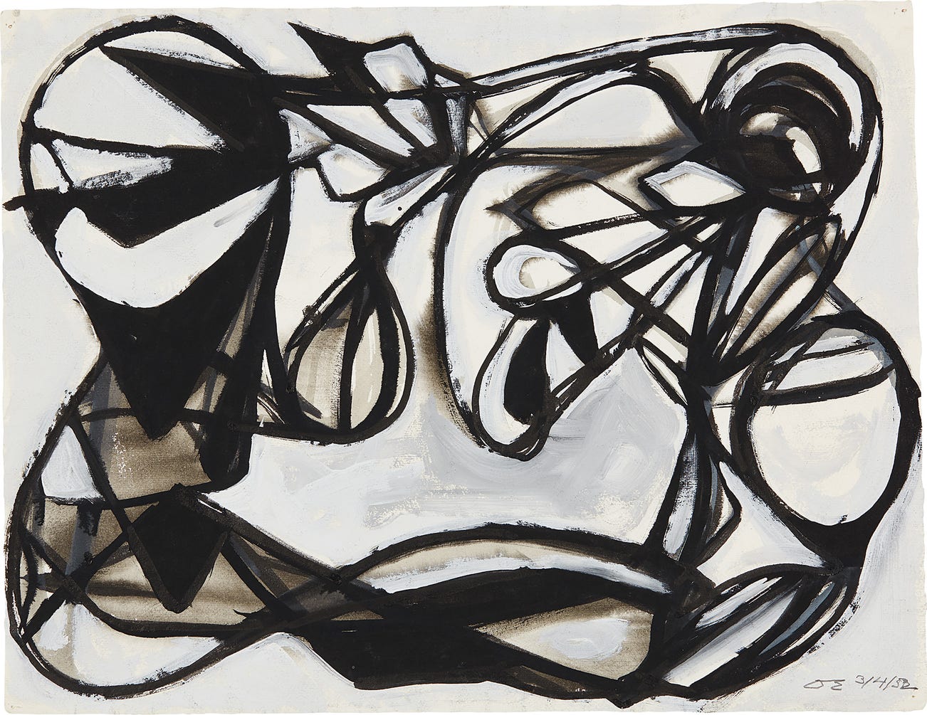 signed with the artist's initials and dated "DS 3/4/52" lower right; further stamped by the Estate of David Smith and numbered "73-52.113" on the reverse
