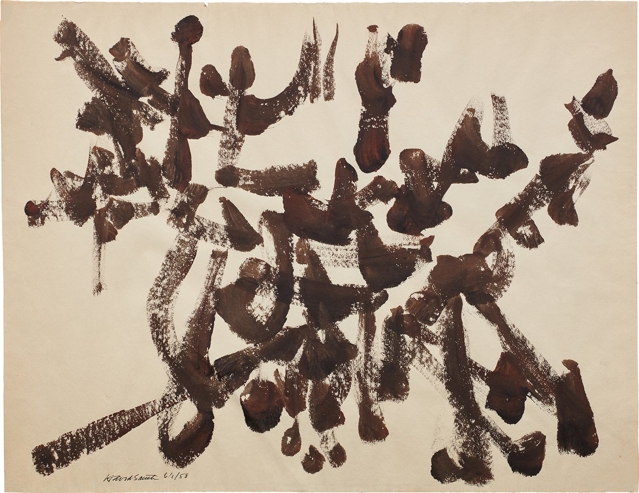 signed and dated "David Smith 6/1/58" lower right; dedicated "To B.H. in appreciation for the thoughtful gifts to Jeannie, when it was needed most—your thoughtfulness helped at a time of stress—Regards Ben and thanks" on the reverse