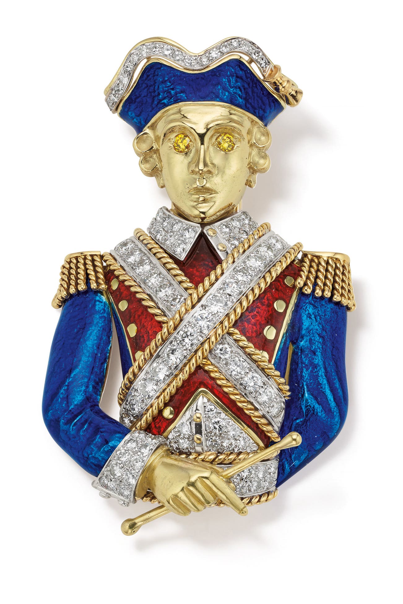 A Diamond, Colored Diamond, Enamel and Gold Brooch/Pendant