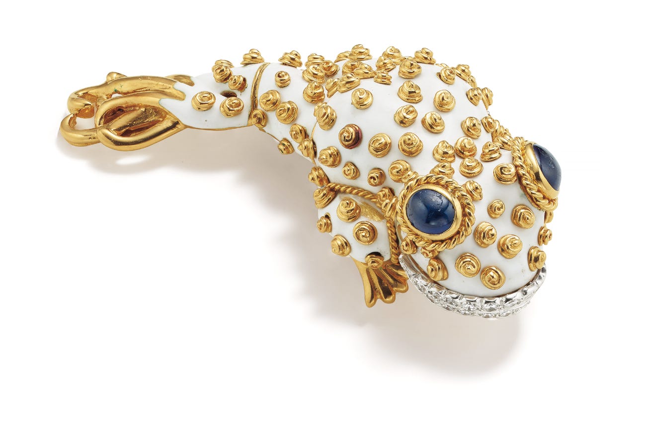 A Diamond, Sapphire, Enamel, Platinum and Gold Brooch