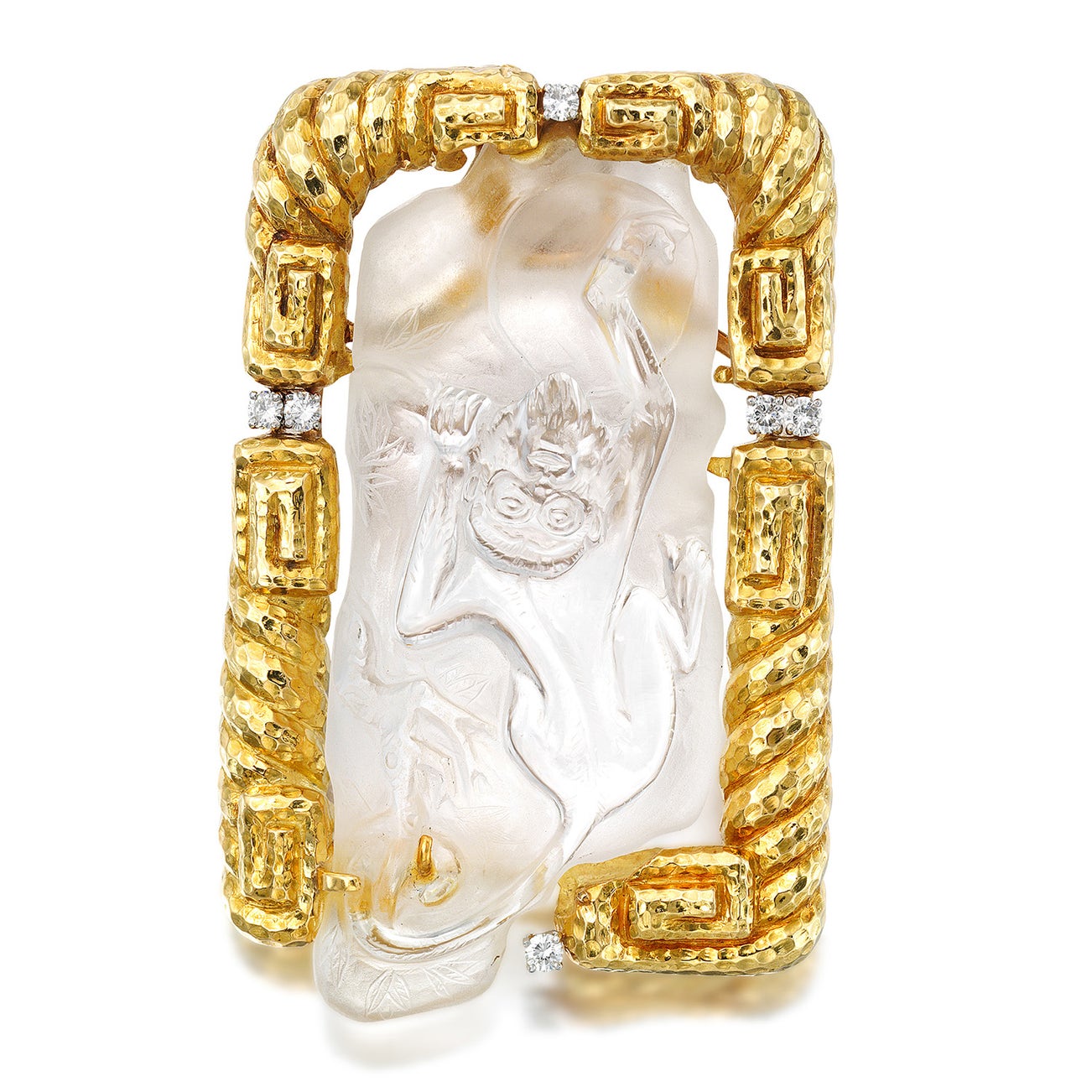 A Rock Crystal, Diamond, and Gold Pendant/Brooch