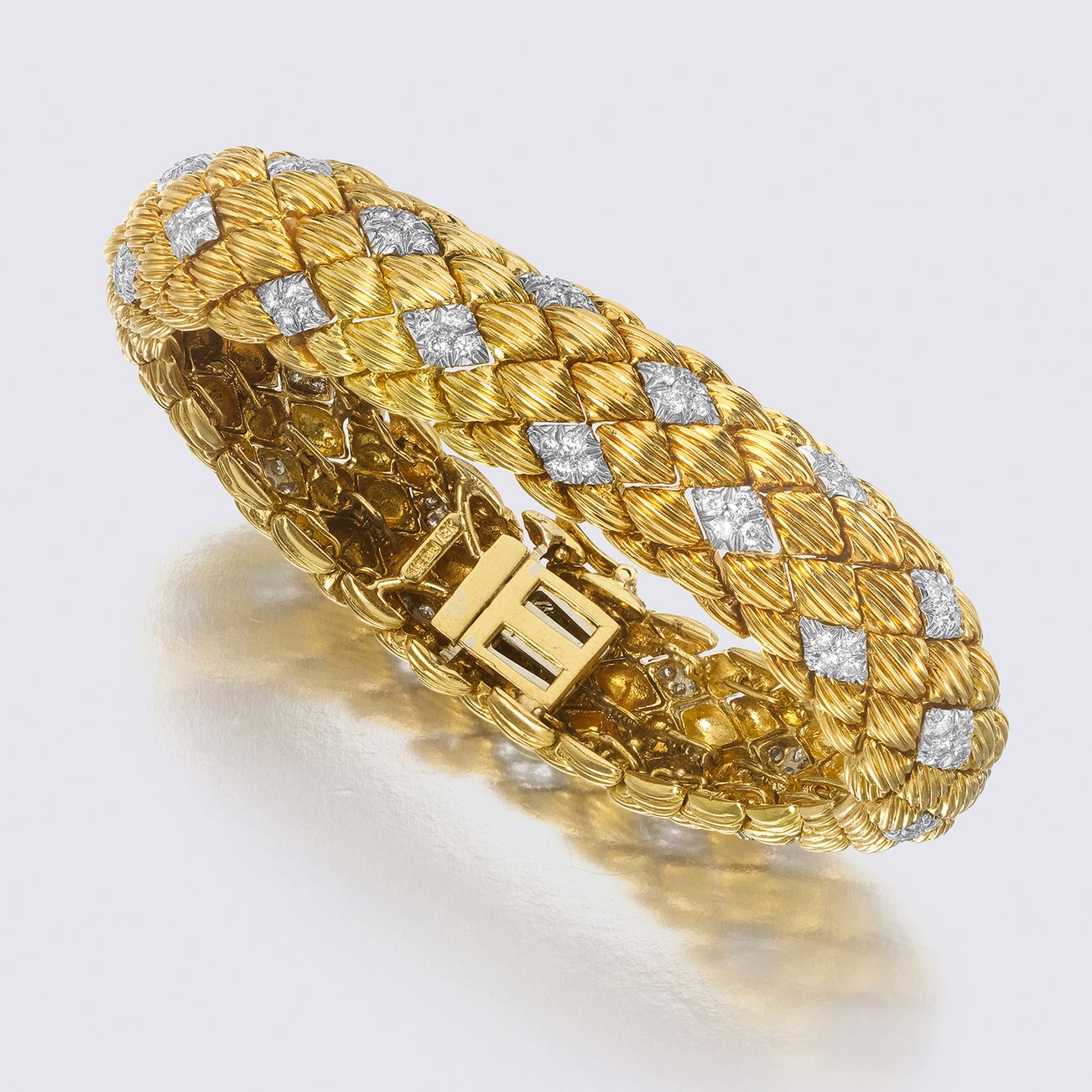 Decorated with circular-cut diamonds, mounted in platinum and 18K yellow gold, length approximately 7 inches, signed Webb.