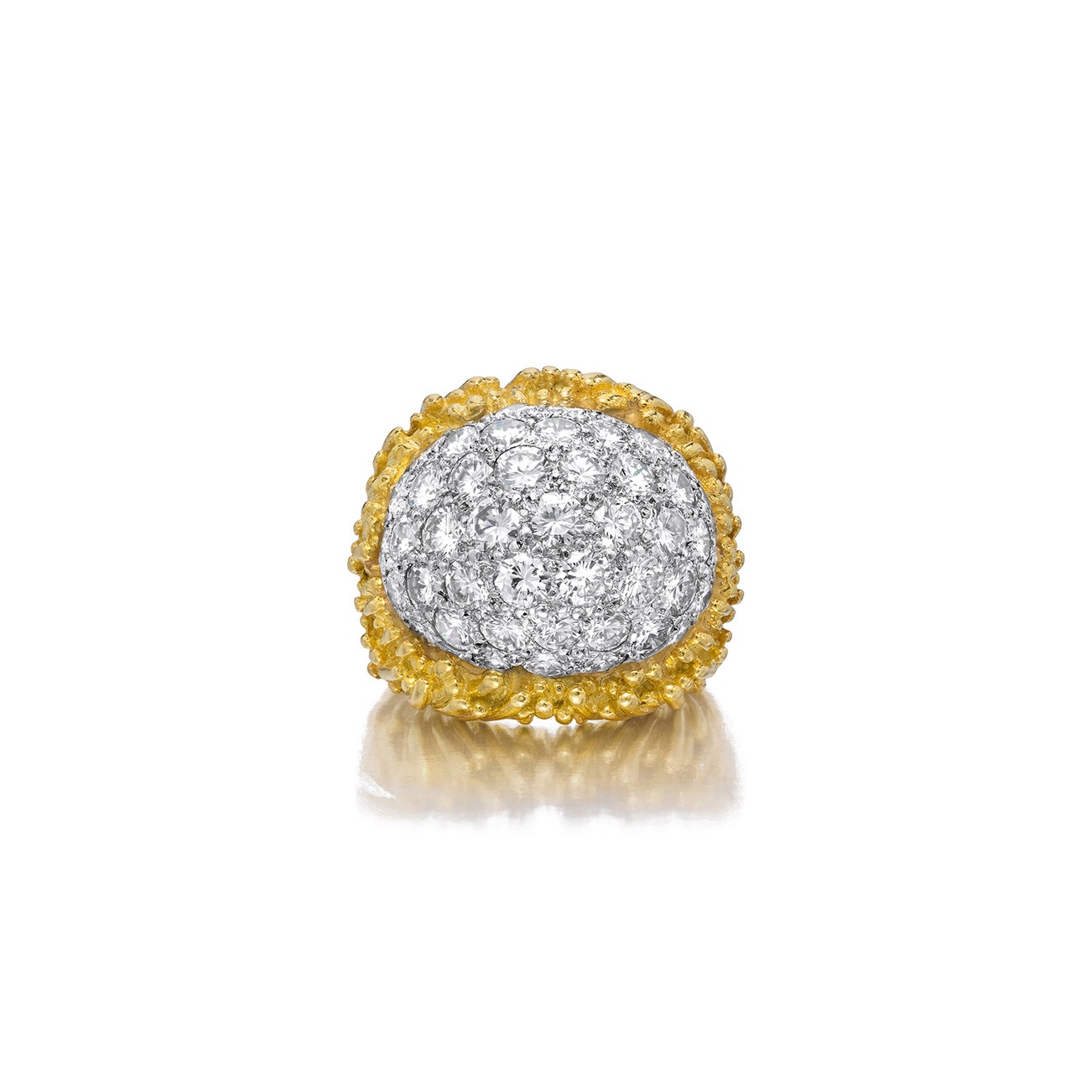 mounted in platinum and 18K yellow gold, size 5, signed Webb.