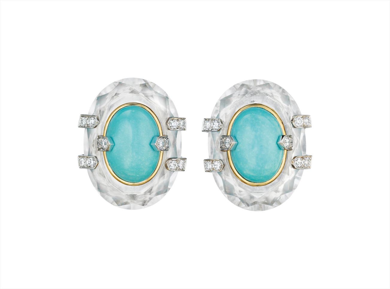 A Pair of Turquoise, Diamond, and Rock Crystal Earrings