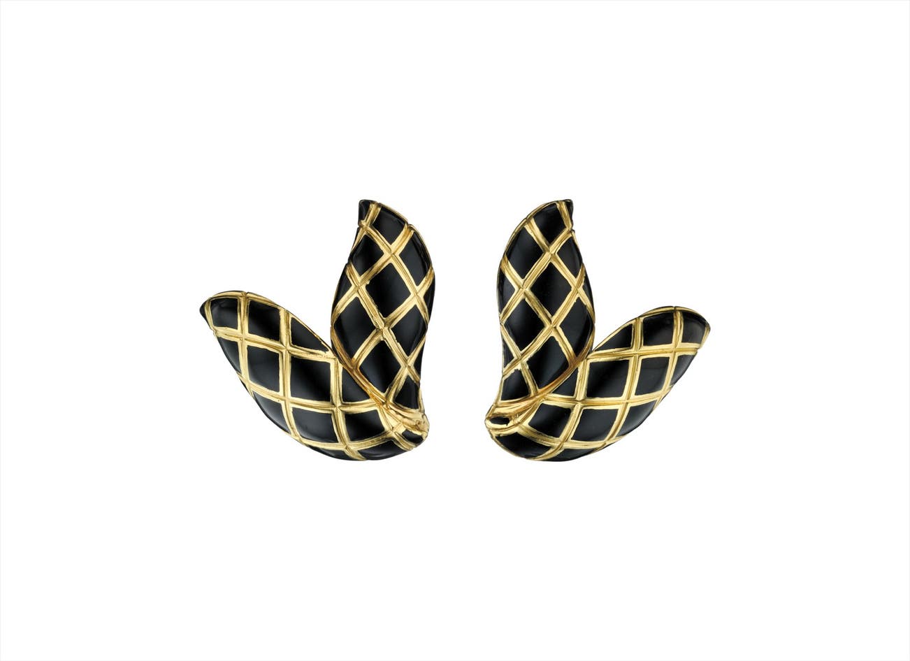 A Pair of Gold and Enamel Earclips