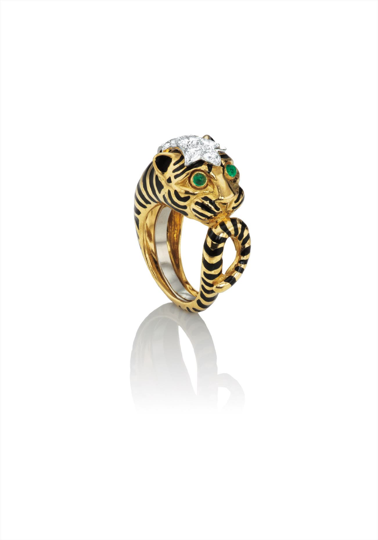 A Gold, Diamond, Emerald, and Enamel 'Tiger' Ring