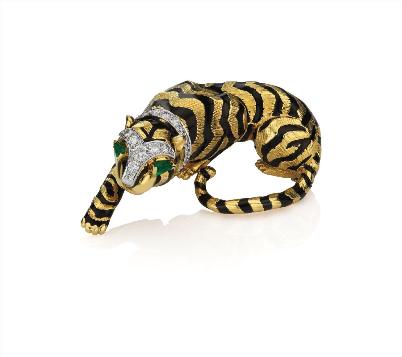 A Gold, Diamond, Emerald, and Enamel 'Tiger' Brooch