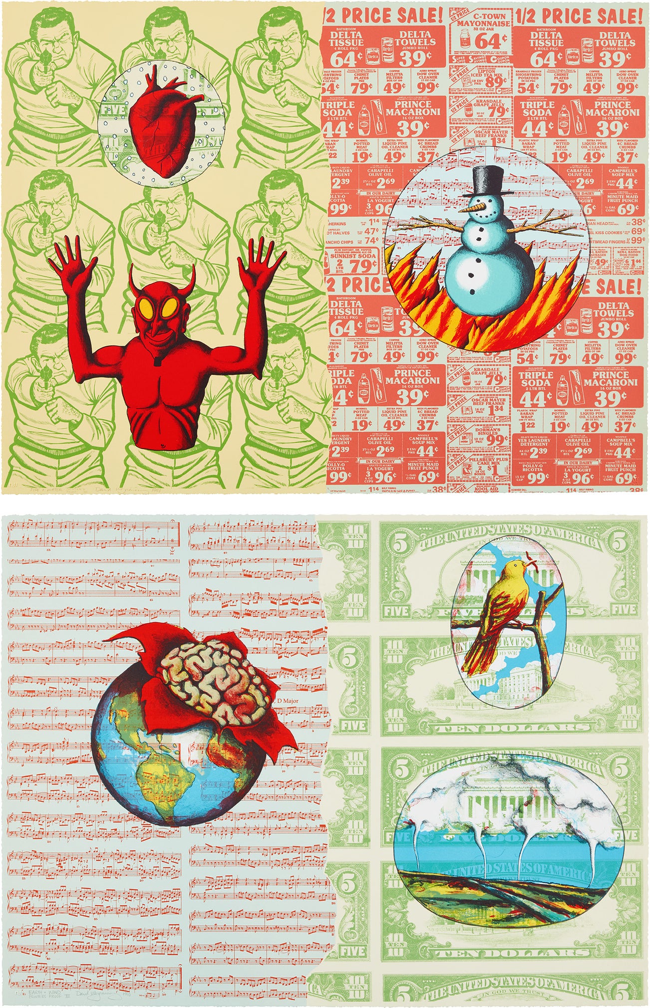 Lithograph diptych in colors, on Rives BFK paper, the full sheets.
