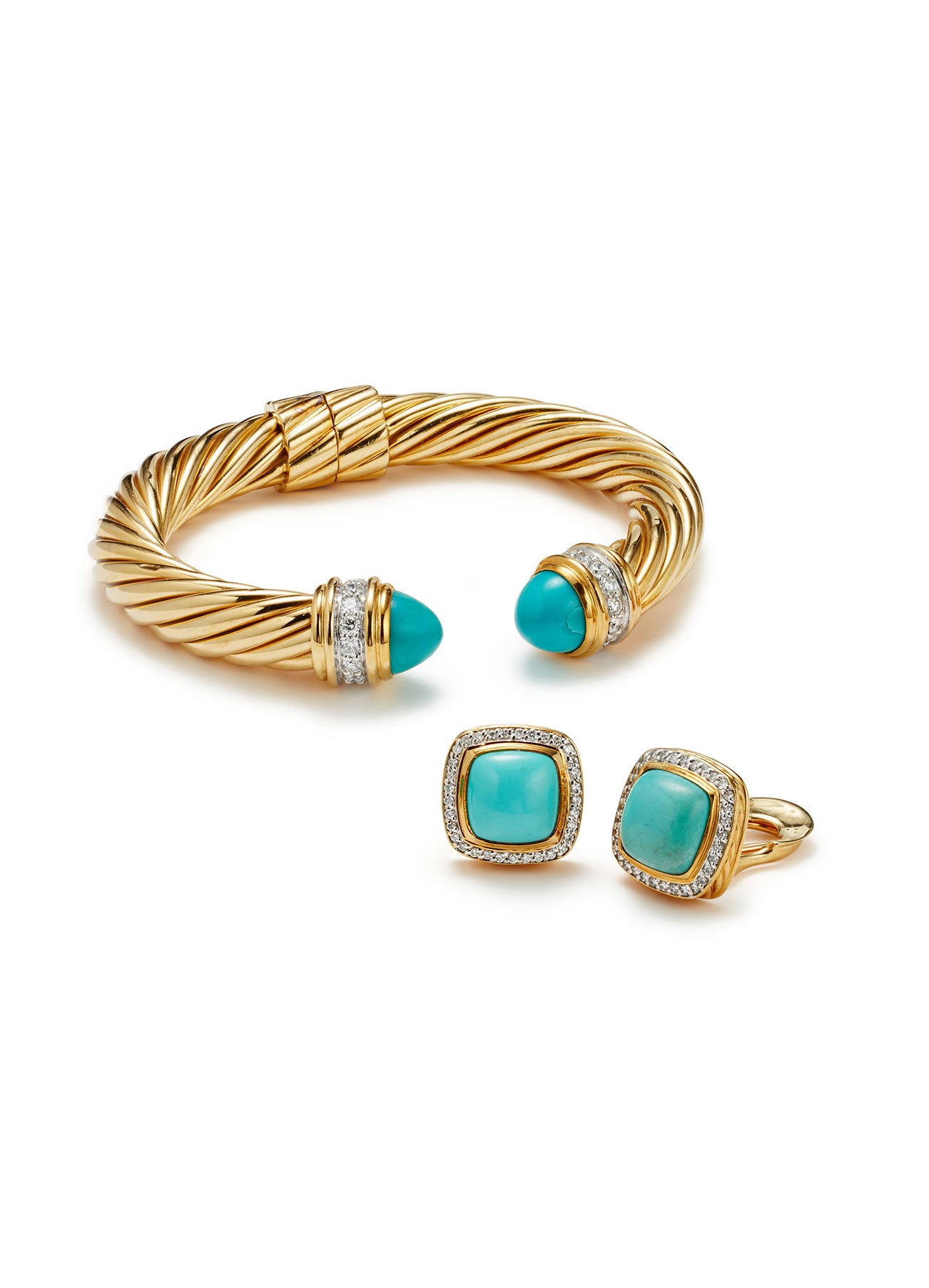 A Set of Turquoise, Diamond and Gold 'Cable' Jewelry