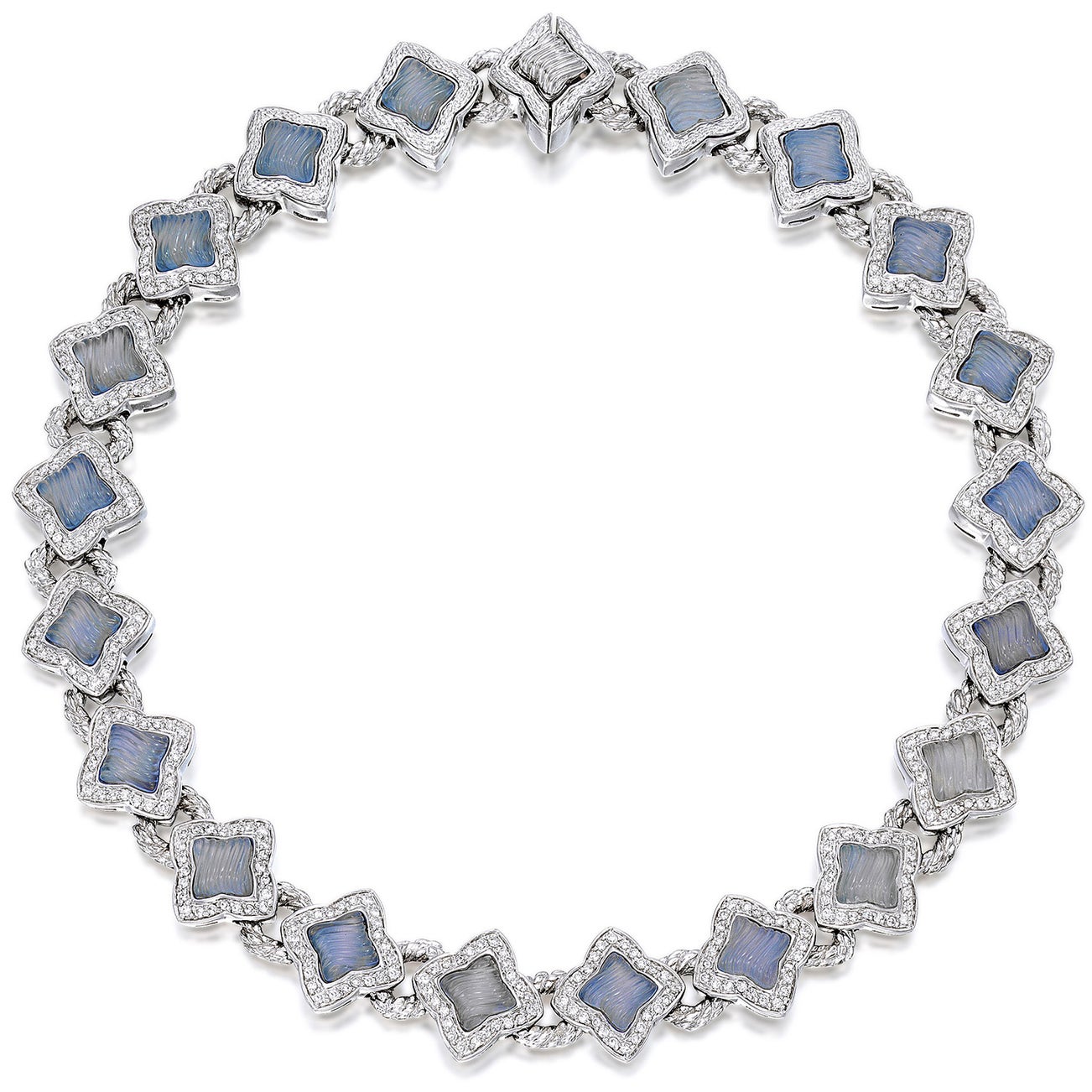 A Chalcedony, Diamond, and White Gold 'Quatrefoil' Necklace