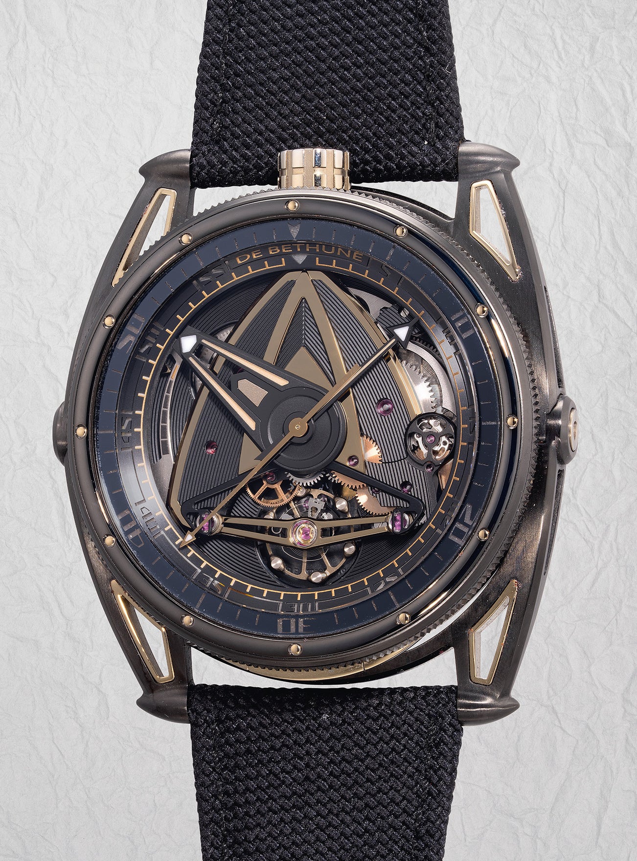 Accompanied by undated De Bethune certificate, instruction manual, travel case, membrane box, additional De Bethune rubber strap with pin buckle, additional De Bethune rubber strap with folding clasp, fitted presentation box and outer suede bag.