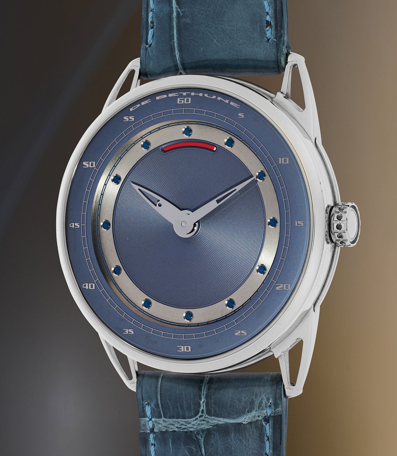 Bearing number 23 on the caseback (which is, ironically, the jersey number of one of De Bethune’s more recognizable collectors), the importance of this particular case number cannot be overstated, as only 23 examples of this first version of the DB25 were made. A silvered blue dial with a guilloché finish and subtle power reserve indicator sets this watch apart from its successors while giving an insight into the early design DNA of what is fast becoming an iconic brand.