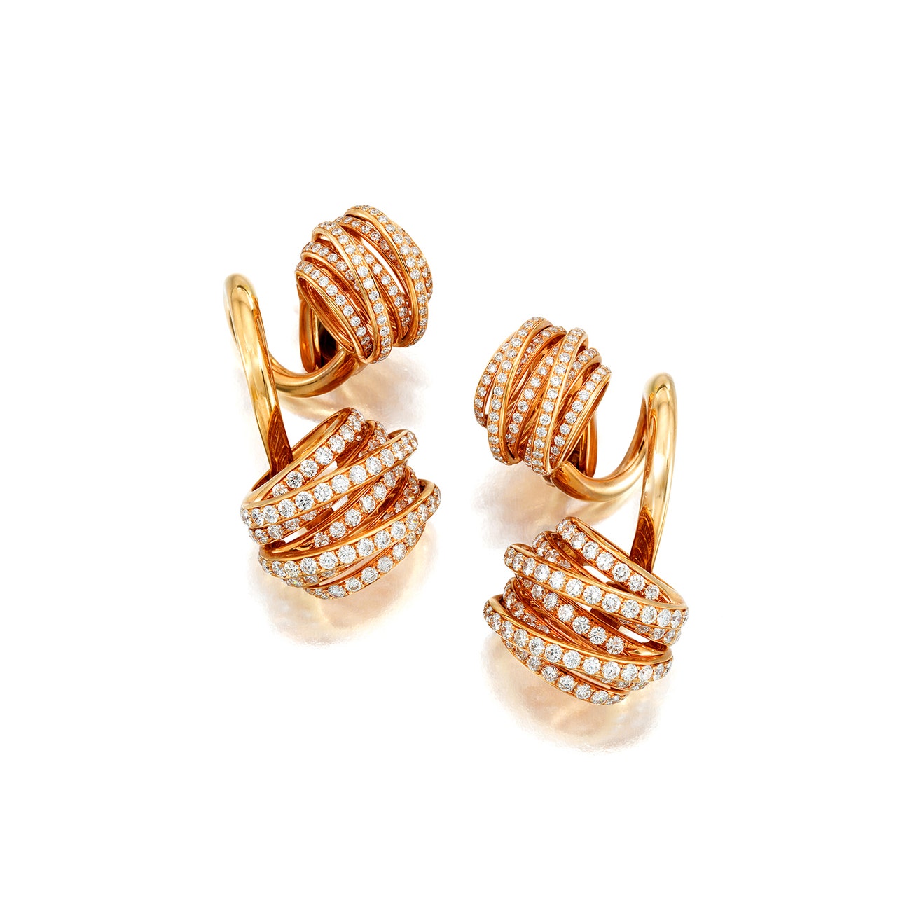 Of overlapping design, each set with brilliant-cut diamonds, mounted in 18k gold, length approximately 1 1/2 inches, signed de Grisogono.