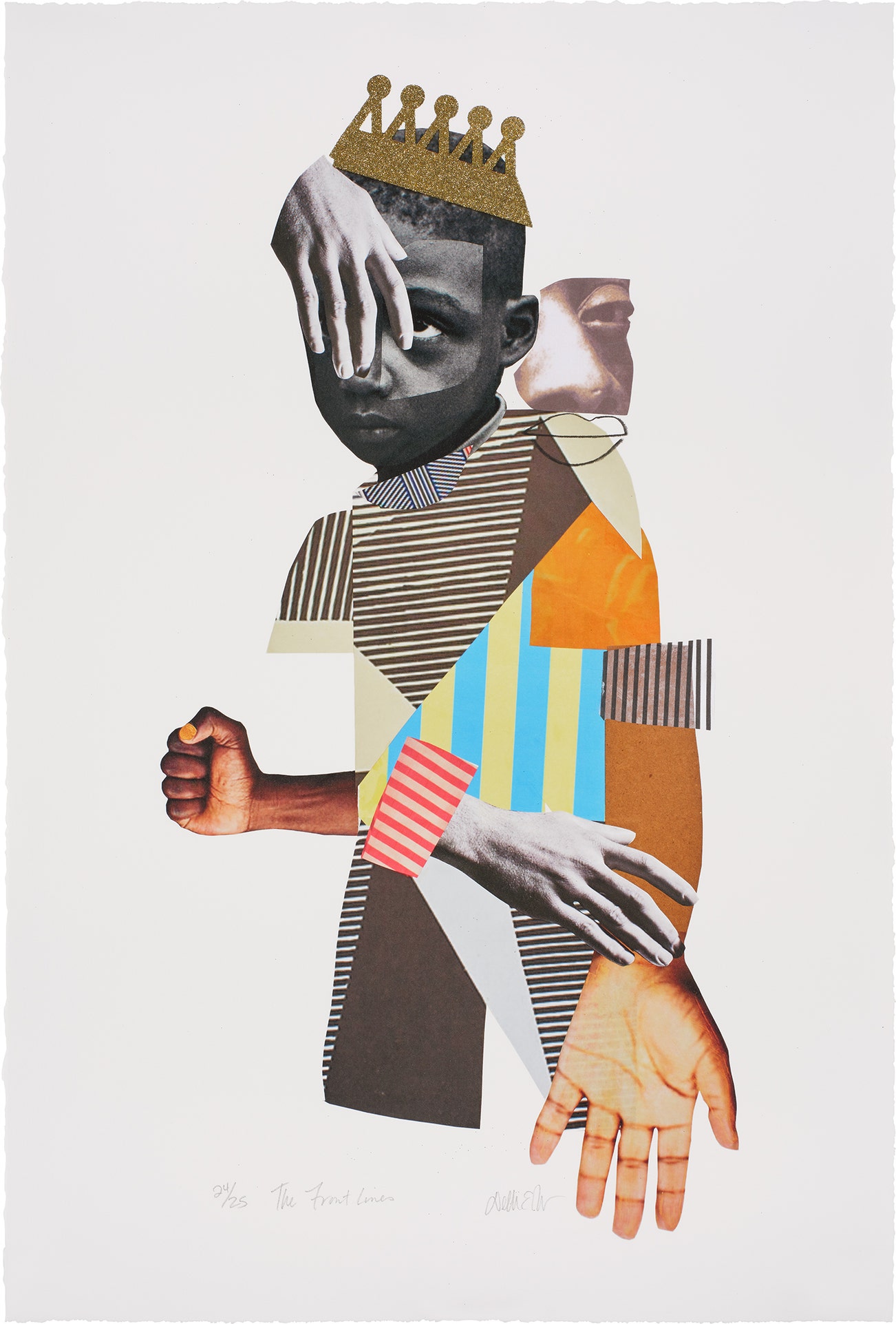 Pigment print in colors with screenprinted glitter, collage and hand-addition, on Hahnemühle Photo Rag paper, with full margins.
