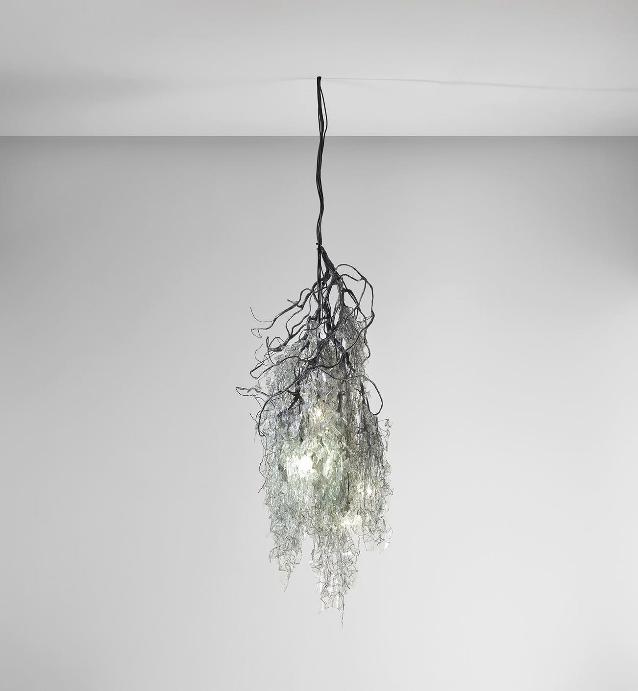 Glass, hand-coloured and varnished papier-mâched steel, steel wire.