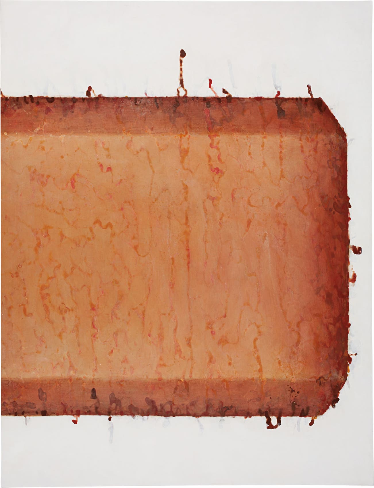 Most of her early works were executed in a neutral color palette of muted browns and reds that allude to the skin tones of her close relatives and friends. The present lot is from the highly acclaimed series Color que soy (1999-2002), in which the artist paints the surface with brown earth pigments taken from places that are significant to her. She then cuts the paper or canvas into geometric strips and hangs these on the wall, creating the visual effect of fragments of flesh. As a result of the mix of many races since the beginnings of the Spanish colonization, people from the Colombian Atlantic coast usually have a wide array of skin tones, and there can be discrimination between racial groups. Color que soy is about the inherent beauty of every skin tone, and it represents a sort of exorcism for Morelos from her difficult upbringing. Through the use of color, it is charged with social impact due to the aesthetic and physical interplay between one's identity and body.