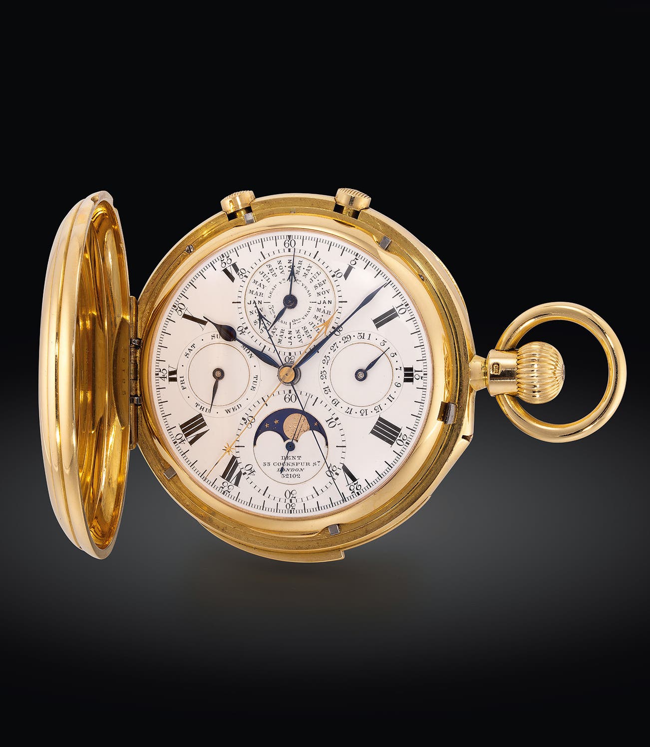 Unseen publicly since it last appeared at auction in 1989, this well-preserved Dent Grande Complication is an exceptionally collectible timepiece that embodies the inventive spirit of British horology.