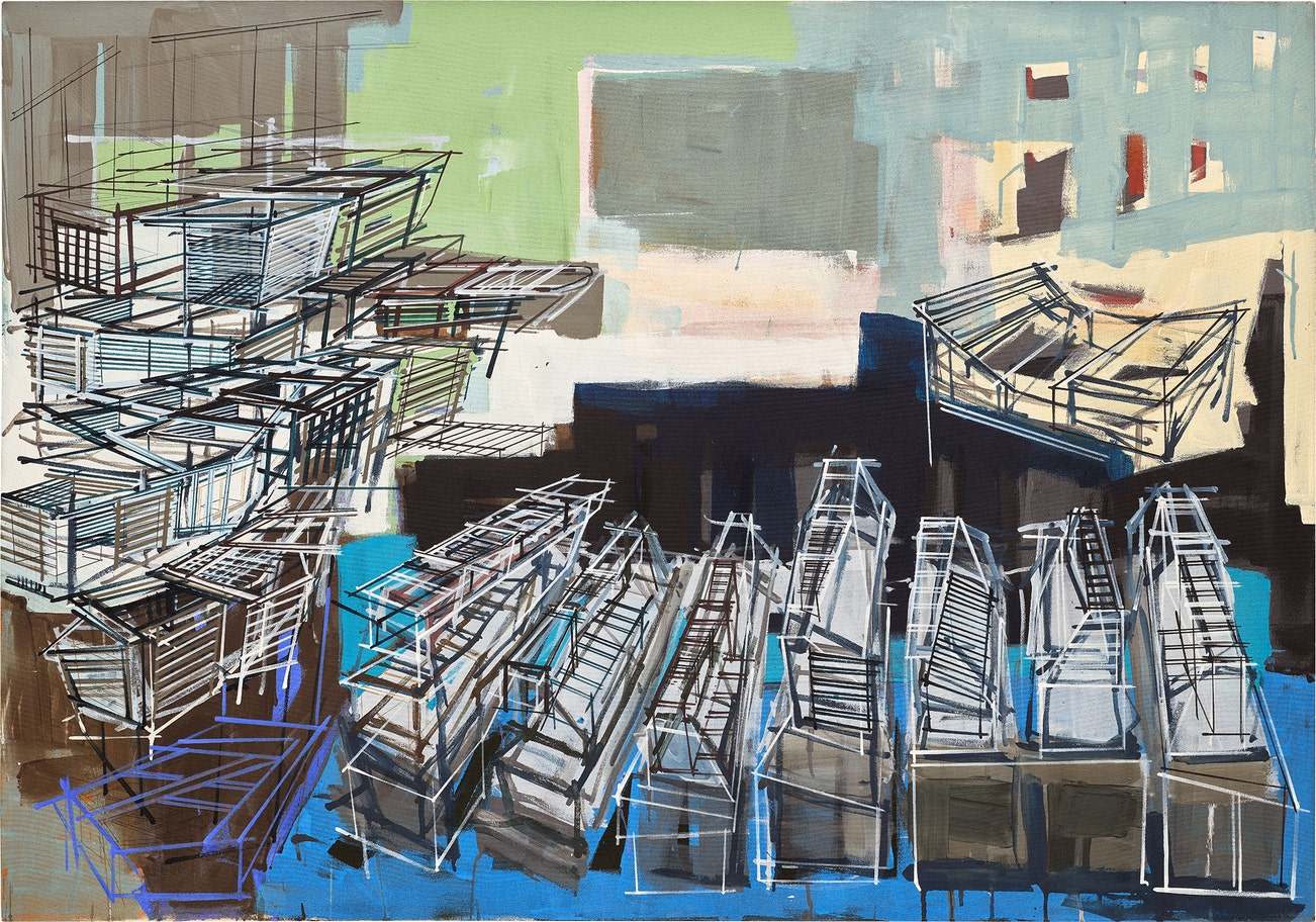 signed, titled and dated "'Excavations - Night Harbor' 2007 Denyse Thomasos." on the reverse