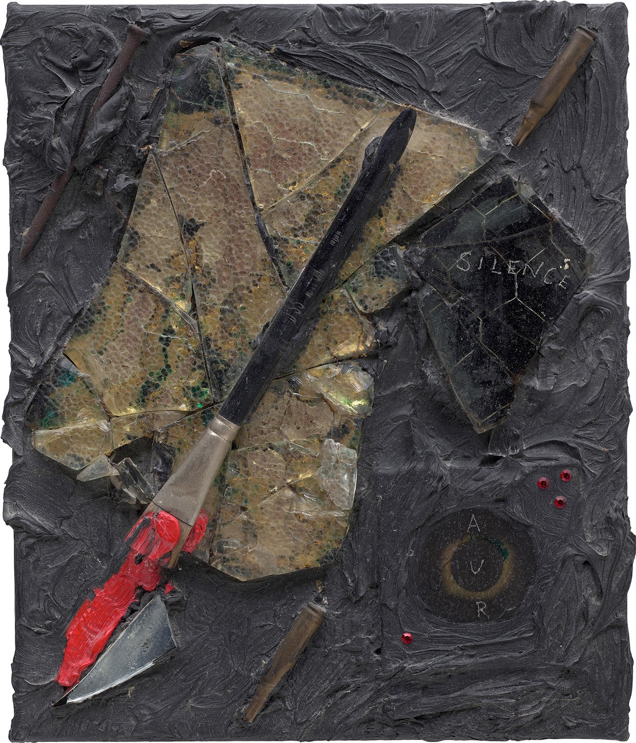 titled 'SILENCE' lower right; further signed 'Derek Jarman' on the overlap; further signed, titled and dated 'Jarm 87 SILENCE' on the reverse