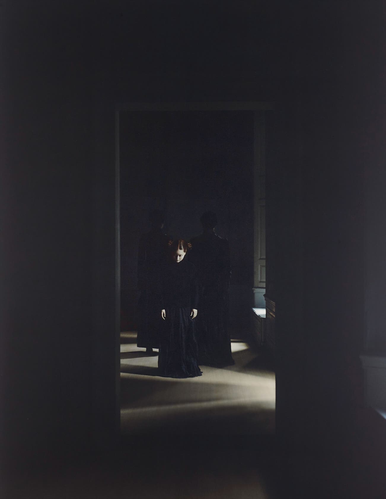 In the series Xteriors, Dutch artist Desiree Dolron has created a body of work that is rich in historical reference and yet completely of this time. Shot in an 18th-century mansion in Utrecht with models clad in specially designed, historical-replica dress, she constructs a narrative foundation which she then builds upon using expert digital technique. As seen in the current lot, the result is a rendering of light and shade that immediately calls forth the Flemish Primitives who have so clearly influenced her approach – the de-saturated palette and the glacial atmosphere exude a sense of melancholy that is both enigmatic and impenetrable. Dolron crafts an image that completely surpasses our visual expectations and challenges our understanding of photography as a medium.