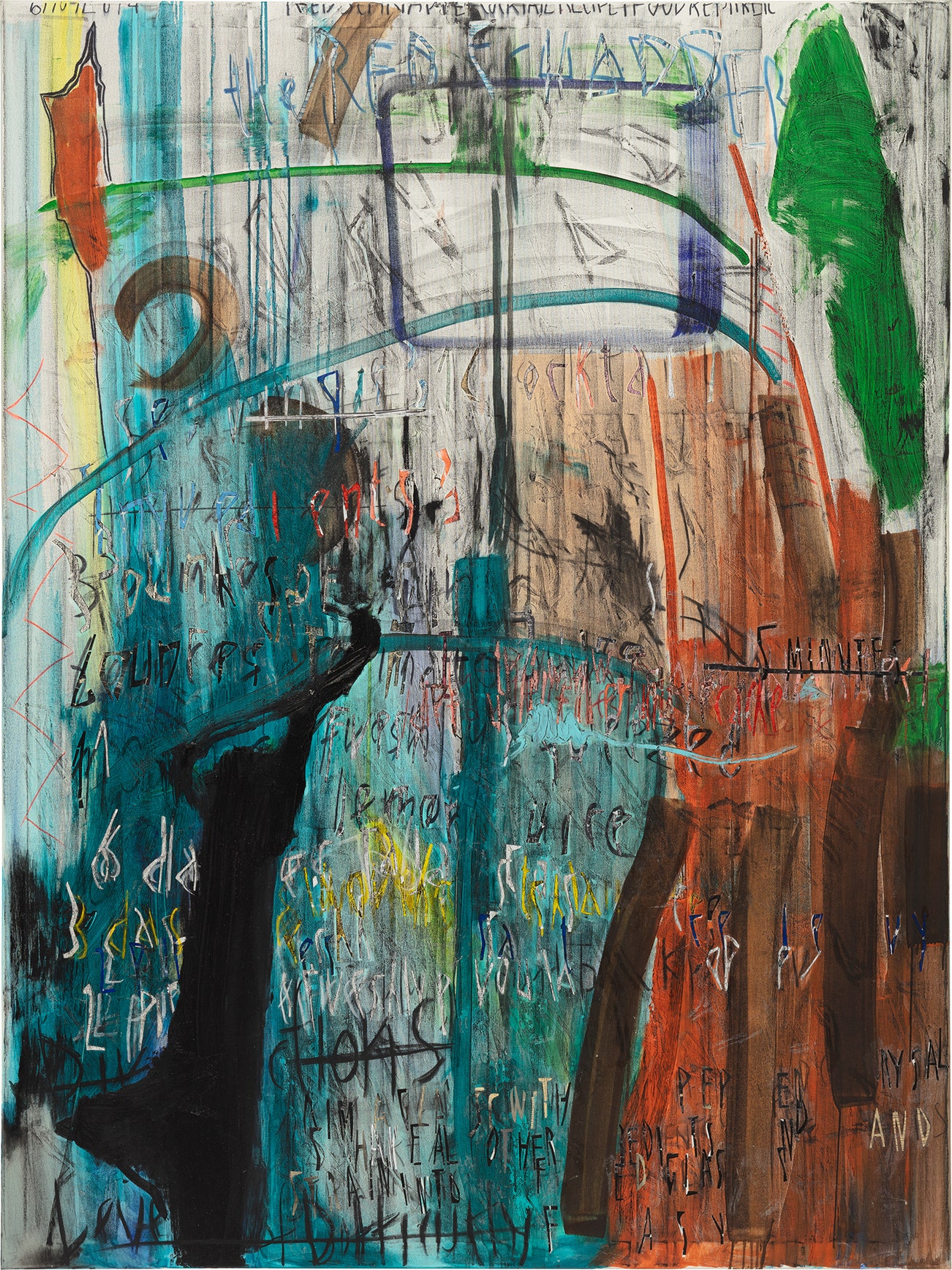 oil, charcoal, glitter and paper collage on canvas