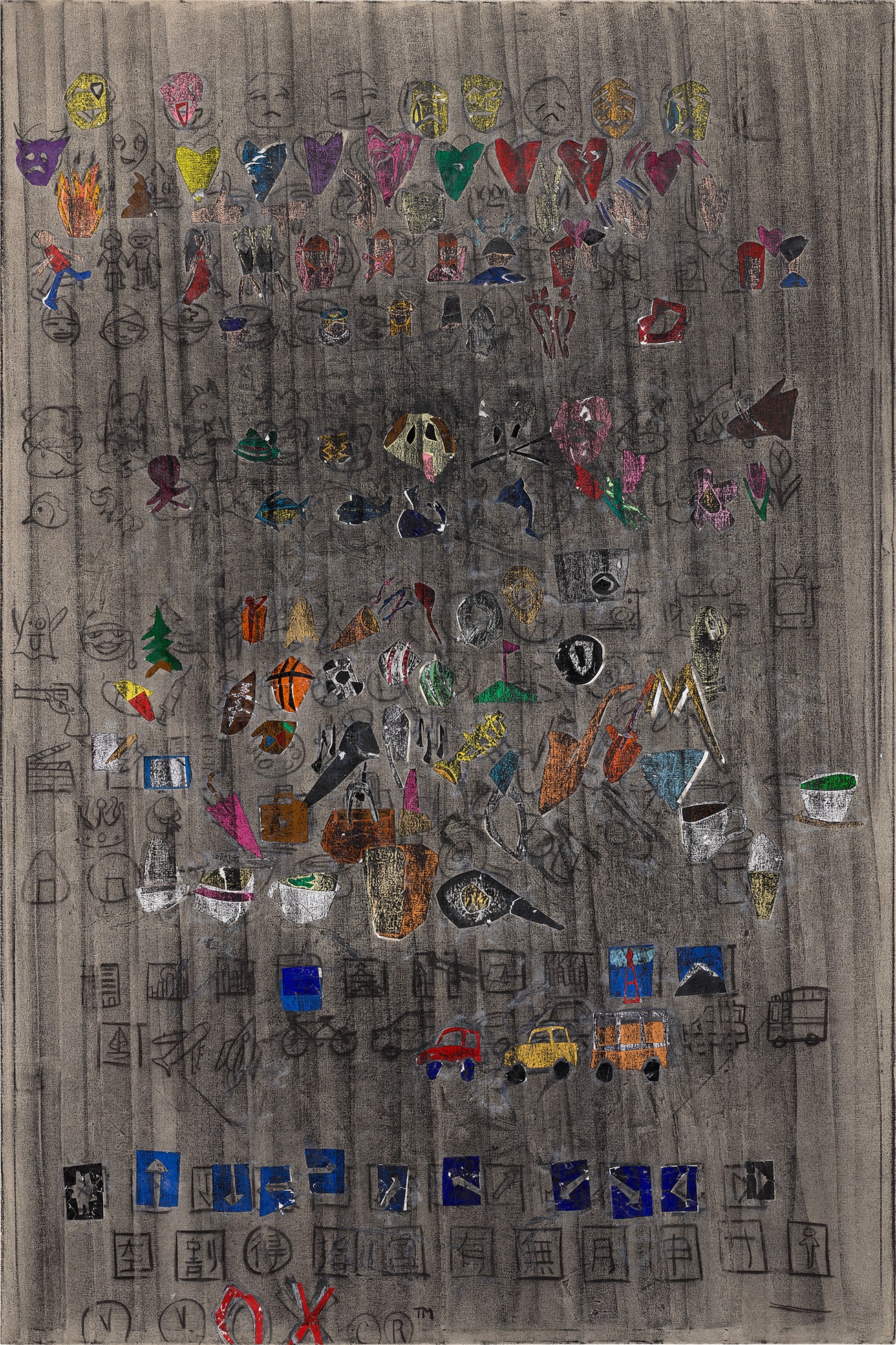oil, charcoal, chalk and collage on linen