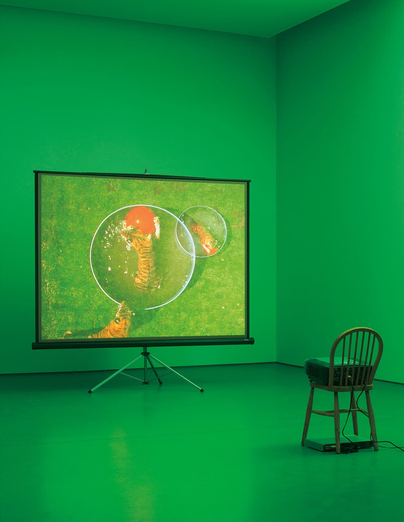 digital projector, DVD player, DVD, free-standing projection screen, wooden chair