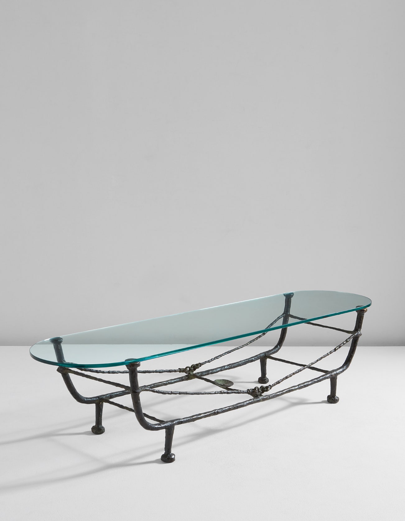 Swiss | B. 1902 D. 1985In 1935 Diego Giacometti took a holiday in Stampa, the Swiss town in which he grew up. The trip marked one of the first periods in which he was separated from his brother Alberto Giacometti, and perhaps in connection with having removed himself from the shadow of his brother's career, he began his first animal sculptures. It was shortly after this trip that the younger Giacometti also started making furniture, after patrons admired the stands he was crafting for his brother's sculptures. Diego modeled his maquettes in plaster (as opposed to clay or wax, which was the more common choice for sculptors) and cast his furniture in bronze, a departure from most metal furniture at the time, which was cast in iron. Illustrious clients included the Maeght and Noailles families as well as the decorator Jean-Michel Frank, who commissioned Alberto (assisted by Diego) to create plaster lighting and fireplace accessories.