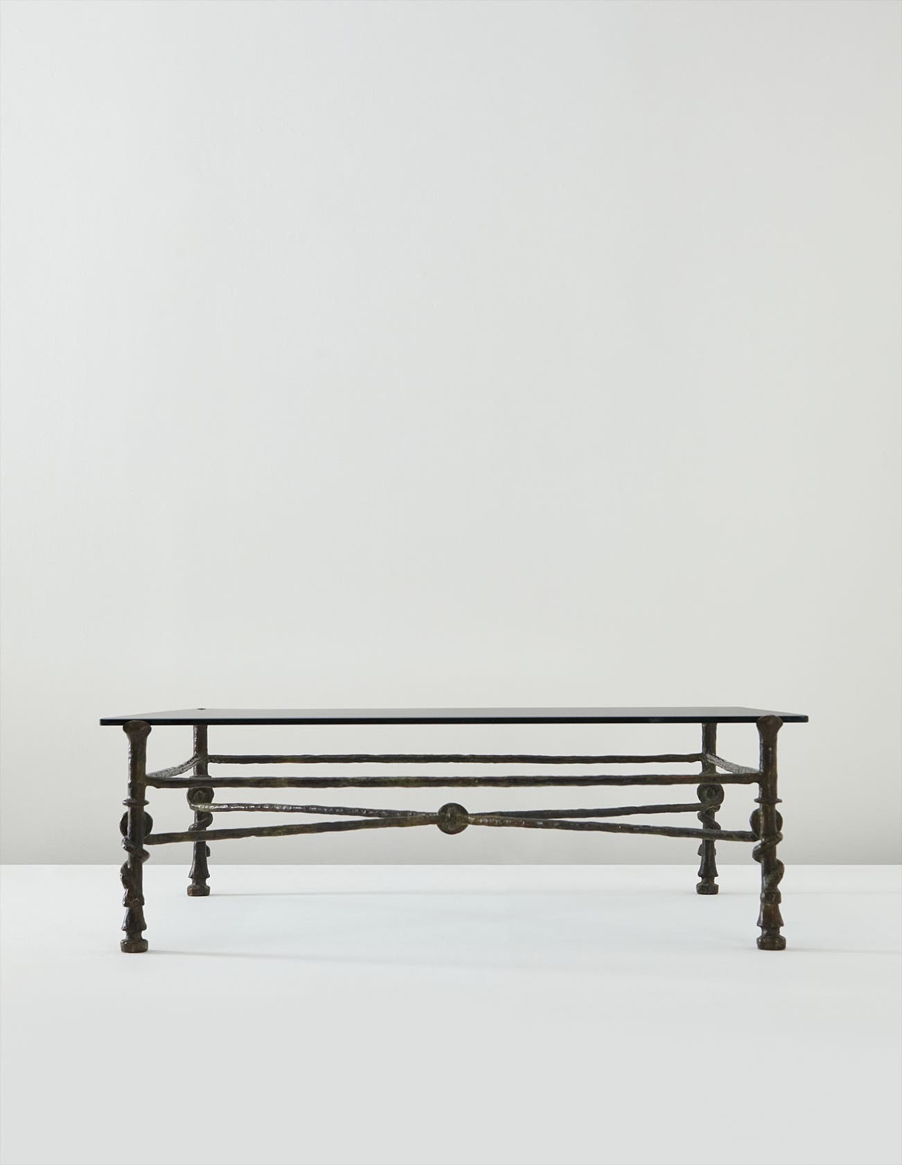 Swiss | B. 1902 D. 1985In 1935 Diego Giacometti took a holiday in Stampa, the Swiss town in which he grew up. The trip marked one of the first periods in which he was separated from his brother Alberto Giacometti, and perhaps in connection with having removed himself from the shadow of his brother's career, he began his first animal sculptures. It was shortly after this trip that the younger Giacometti also started making furniture, after patrons admired the stands he was crafting for his brother's sculptures. Diego modeled his maquettes in plaster (as opposed to clay or wax, which was the more common choice for sculptors) and cast his furniture in bronze, a departure from most metal furniture at the time, which was cast in iron. Illustrious clients included the Maeght and Noailles families as well as the decorator Jean-Michel Frank, who commissioned Alberto (assisted by Diego) to create plaster lighting and fireplace accessories.