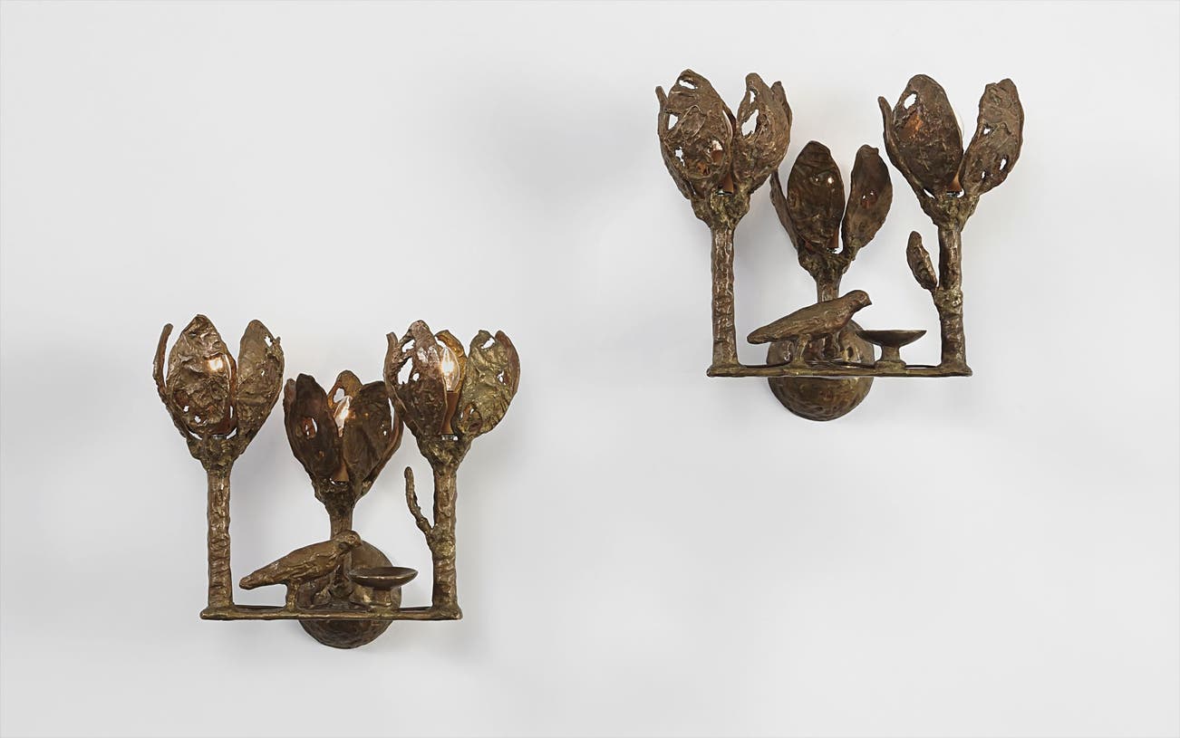 Swiss | B. 1902 D. 1985In 1935 Diego Giacometti took a holiday in Stampa, the Swiss town in which he grew up. The trip marked one of the first periods in which he was separated from his brother Alberto Giacometti, and perhaps in connection with having removed himself from the shadow of his brother's career, he began his first animal sculptures. It was shortly after this trip that the younger Giacometti also started making furniture, after patrons admired the stands he was crafting for his brother's sculptures. Diego modeled his maquettes in plaster (as opposed to clay or wax, which was the more common choice for sculptors) and cast his furniture in bronze, a departure from most metal furniture at the time, which was cast in iron. Illustrious clients included the Maeght and Noailles families as well as the decorator Jean-Michel Frank, who commissioned Alberto (assisted by Diego) to create plaster lighting and fireplace accessories.