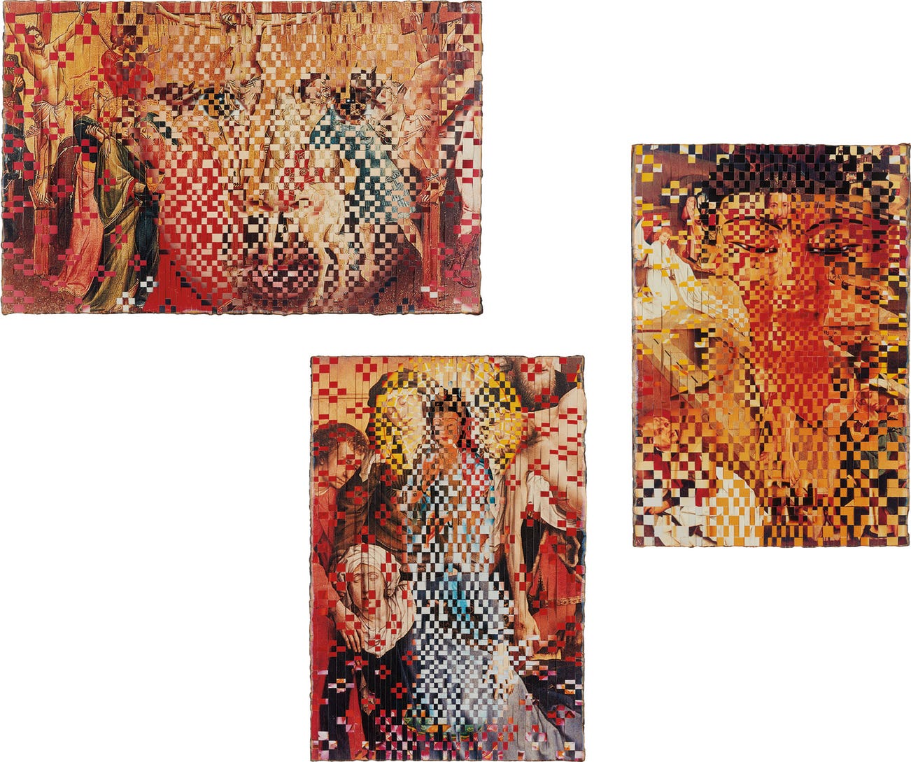 Triptych of cut and woven chromogenic prints and linen tape.