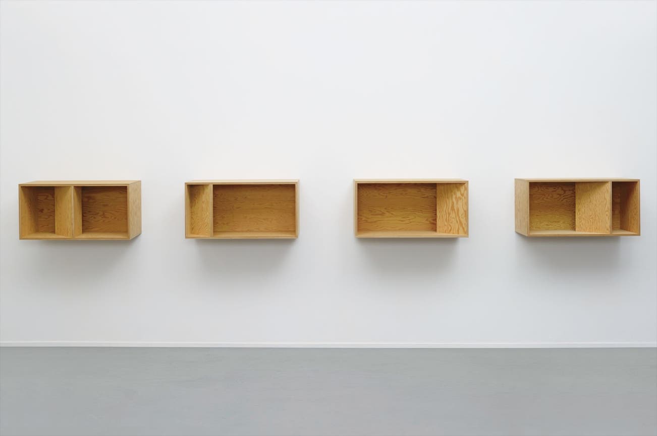 Though Judd did study the history of art, Ballantine believes that Judd’s study of philosophy and British empiricism at Columbia held greater significance for his artistic inspiration. Of the present lot, one unit seems empty while another may include an element dividing its interior by 1:2 or 1:4. Although the 4 units exist as a whole, each part differentiates itself from the grouping – acting at once alone and unified as part of the group. As Judd explains, “The thing as a whole, its quality as a whole, is what is interesting." (Donald Judd in Donald Judd. White and Grey. Complete Writings, New York, 1975, p. 116)