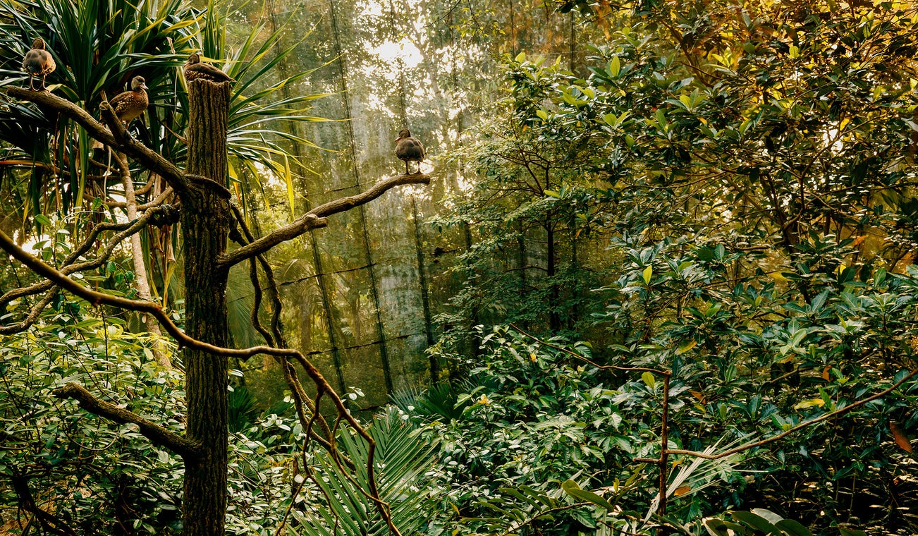 My Forest Has No Name is a series of photographs of man-made tropical environments all over the world. They are part of Donna Ong’s (b. 1978, Singapore) ongoing investigation into the portrayal of the forest from colonial times into the present day. She explores humankind’s fascination with the tropical forest and attempts to unpack how our perception of the forest is shaped through verbal and pictorial depictions. Often, images and descriptions of the forest, though purportedly empirical, are also selective imaginative constructs. They reveal the various lenses through which we build our understanding and opinion of the forest, and how that affects the way we think and deal with the forest, including the decisions we make about it ecologically, politically, socially and economically. (xxxiv) was photographed at the Singapore Zoo.