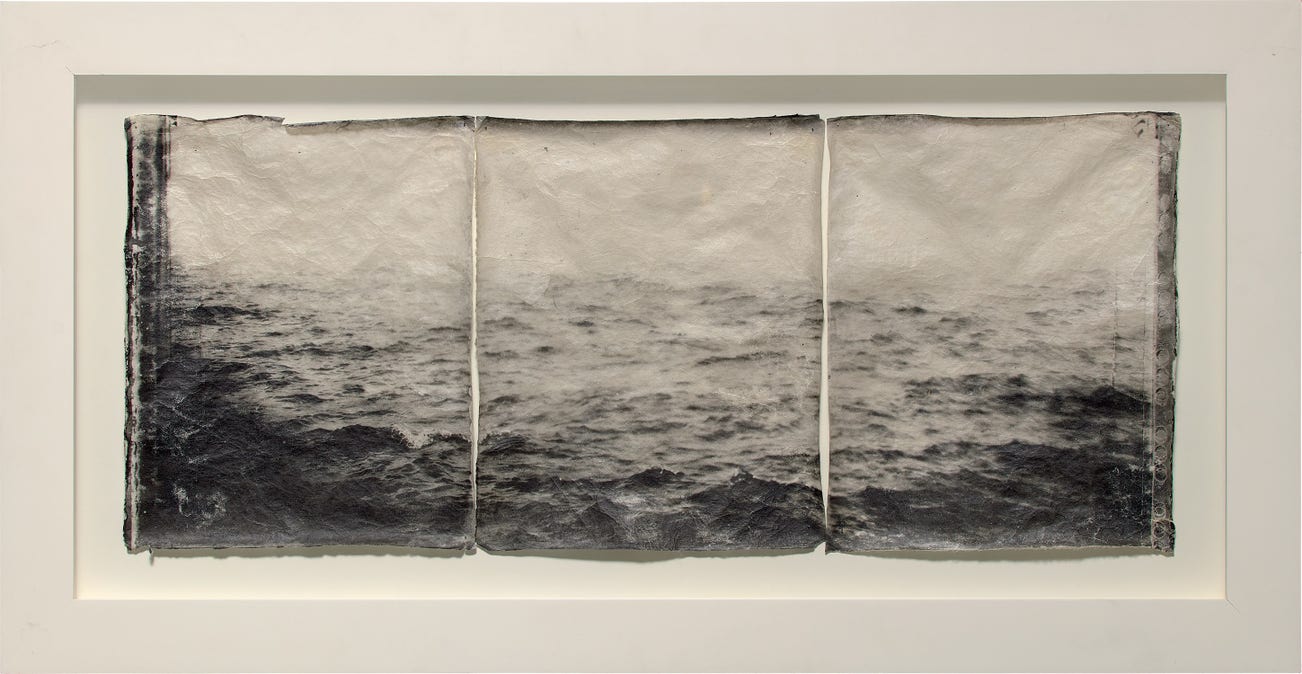 Three toned gelatin silver prints on thai mulberry paper with metallic push pins.