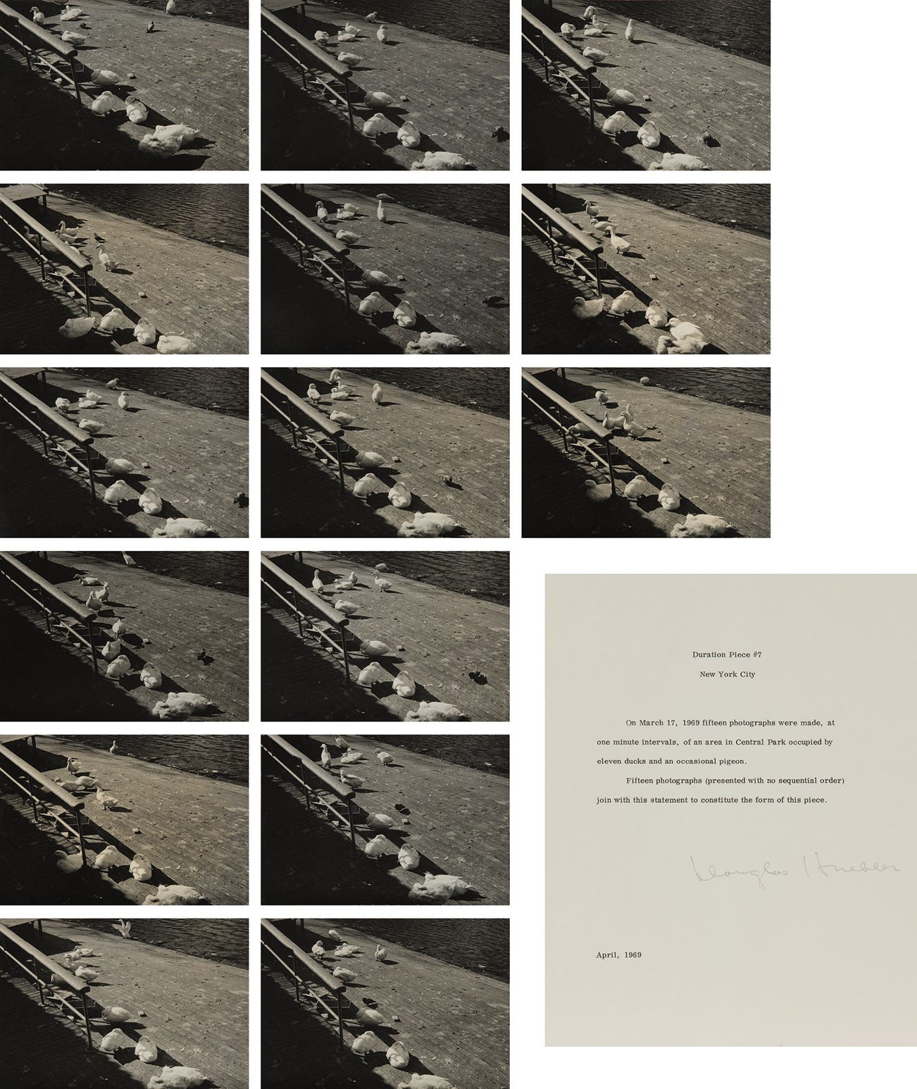 each photograph signed "Douglas Huebler" on the reverse; further signed "Douglas Huebler" lower right of project statement