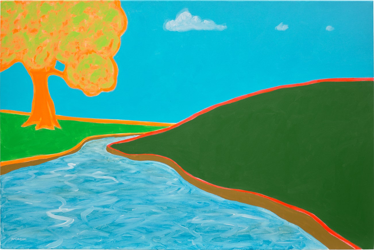 signed 'McCORMICK' lower left; further signed, titled and dated '"HAZE FIELD STREAM" 2021 DUNCAN ROBERT MCCORMICK' on the reverse