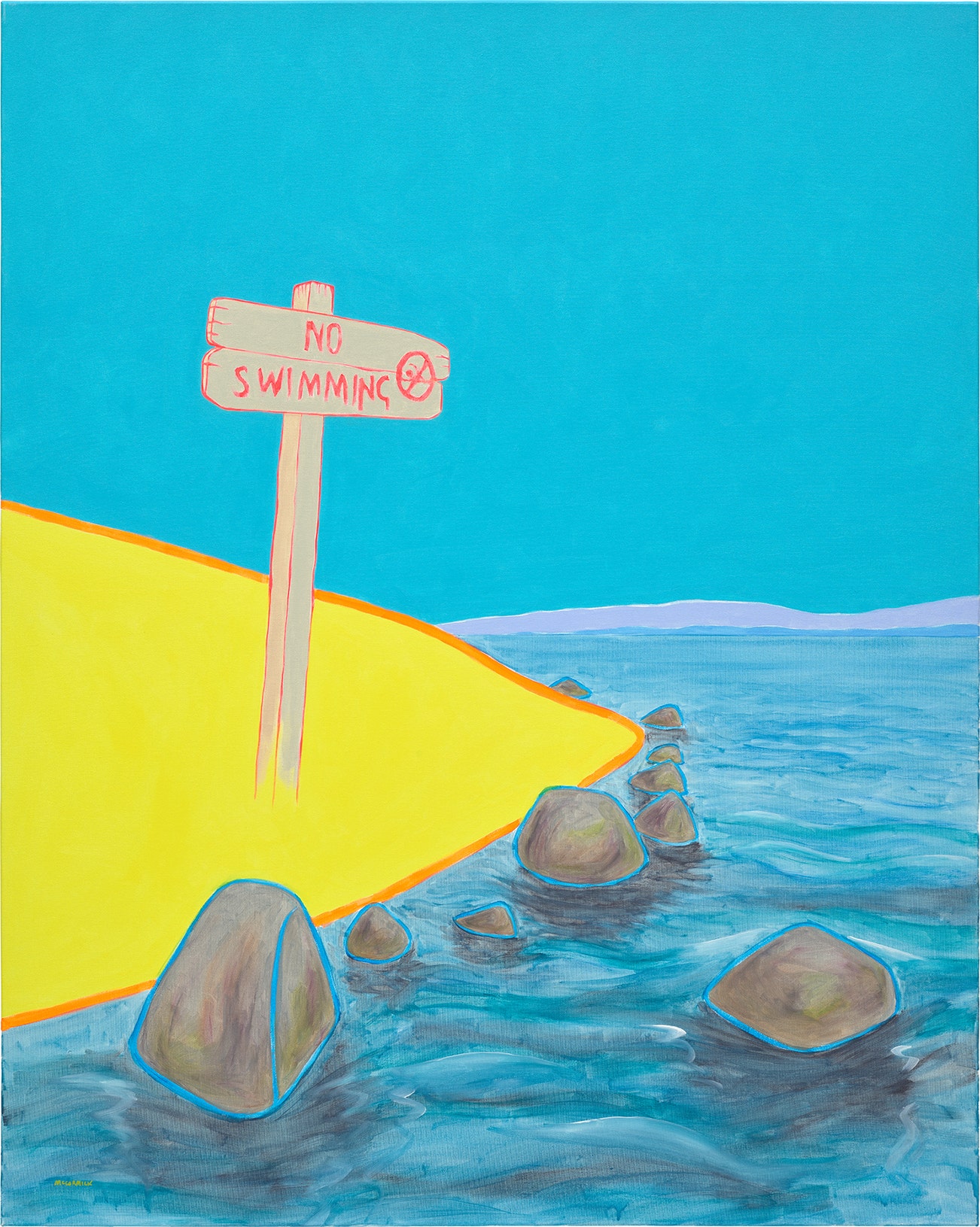 signed 'MCCORMICK' lower left; signed, titled and dated '"NO SWIMMING!" 2020 DUNCAN ROBERT MCCORMICK' on the reverse