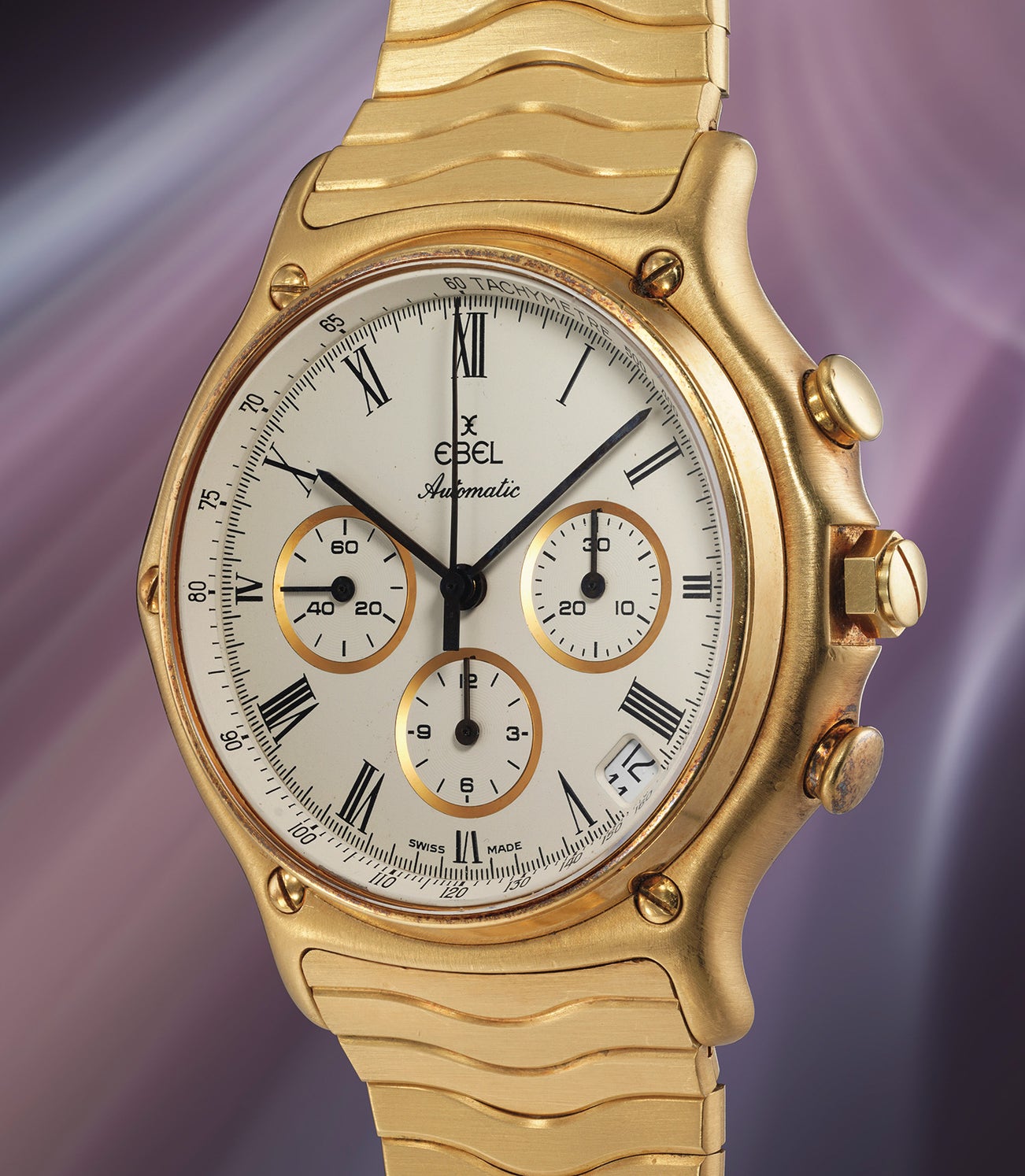 The Sport Classique models were launched in 1977 with their defining “wave” bracelets, however it was not until 1982 that the chronograph model was presented, Ebel turning to Zenith to supply El Primero chronograph movements that they had stopped producing but still had a few in stock. Rolex is often credited for the revival of the El Primero movement when they introduced the automatic winding Daytona ref 16520, but that was in 1988, 6 years after Ebel had launched their version!