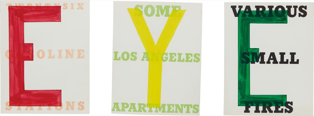 His most iconic works are at turns poetic and deadpan, epigrammatic text with nods to advertising copy, juxtaposed with imagery that is either cinematic and sublime or seemingly wry documentary. Whether the subject is his iconic Standard Gas Station or the Hollywood Sign, a parking lot or highway, his works are a distillation of American idealism, echoing the expansive Western landscape and optimism unique to postwar America.