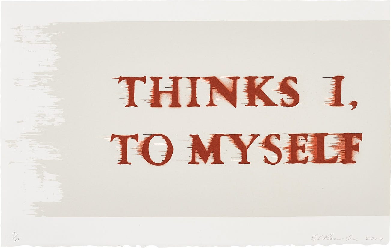 His most iconic works are at turns poetic and deadpan, epigrammatic text with nods to advertising copy, juxtaposed with imagery that is either cinematic and sublime or seemingly wry documentary. Whether the subject is his iconic Standard Gas Station or the Hollywood Sign, a parking lot or highway, his works are a distillation of American idealism, echoing the expansive Western landscape and optimism unique to postwar America.