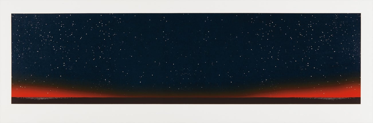 His most iconic works are at turns poetic and deadpan, epigrammatic text with nods to advertising copy, juxtaposed with imagery that is either cinematic and sublime or seemingly wry documentary. Whether the subject is his iconic Standard Gas Station or the Hollywood Sign, a parking lot or highway, his works are a distillation of American idealism, echoing the expansive Western landscape and optimism unique to postwar America.