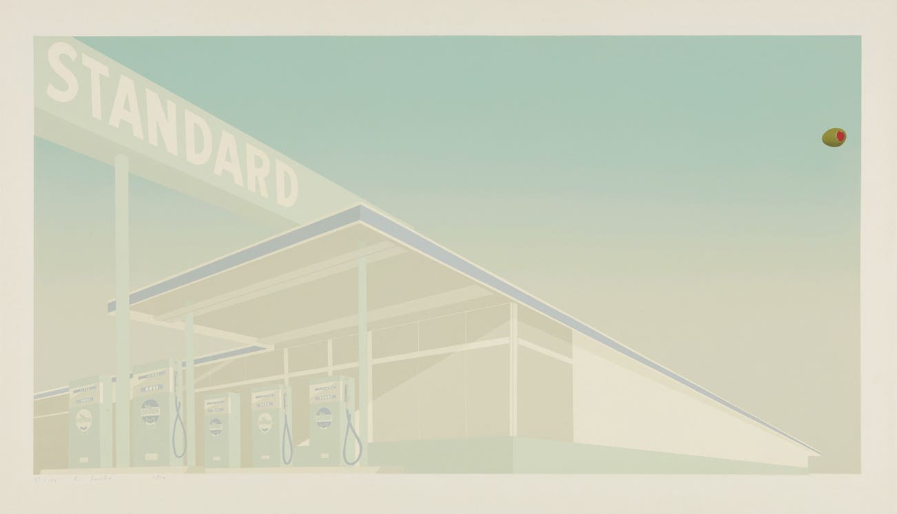 His most iconic works are at turns poetic and deadpan, epigrammatic text with nods to advertising copy, juxtaposed with imagery that is either cinematic and sublime or seemingly wry documentary. Whether the subject is his iconic Standard Gas Station or the Hollywood Sign, a parking lot or highway, his works are a distillation of American idealism, echoing the expansive Western landscape and optimism unique to postwar America.