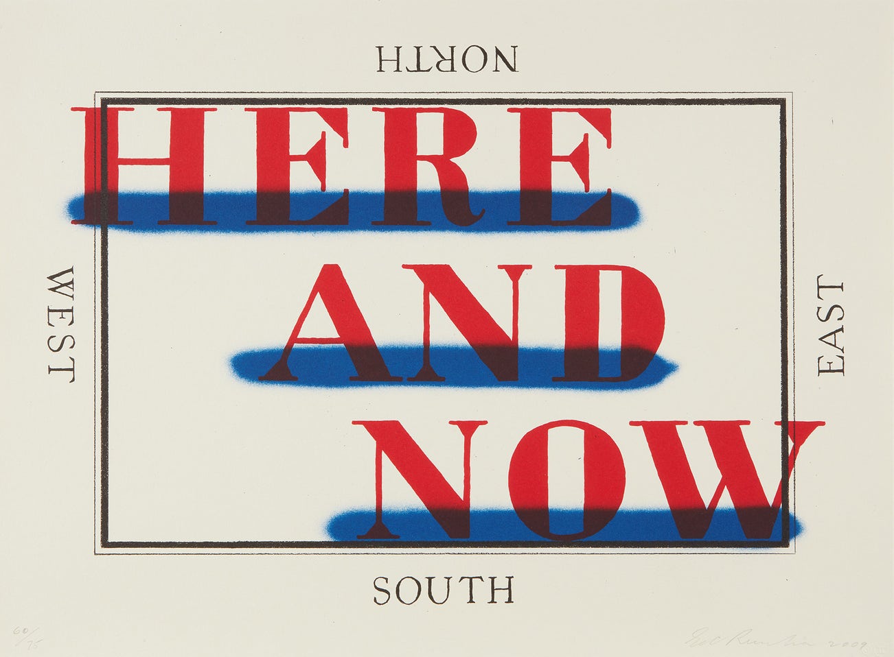 His most iconic works are at turns poetic and deadpan, epigrammatic text with nods to advertising copy, juxtaposed with imagery that is either cinematic and sublime or seemingly wry documentary. Whether the subject is his iconic Standard Gas Station or the Hollywood Sign, a parking lot or highway, his works are a distillation of American idealism, echoing the expansive Western landscape and optimism unique to postwar America.
