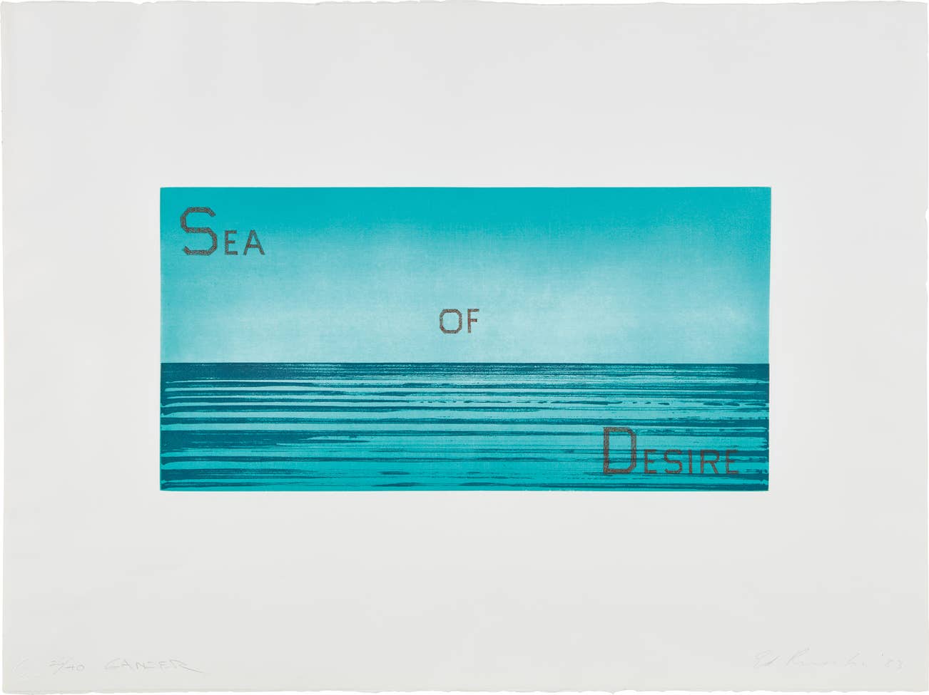 His most iconic works are at turns poetic and deadpan, epigrammatic text with nods to advertising copy, juxtaposed with imagery that is either cinematic and sublime or seemingly wry documentary. Whether the subject is his iconic Standard Gas Station or the Hollywood Sign, a parking lot or highway, his works are a distillation of American idealism, echoing the expansive Western landscape and optimism unique to postwar America.